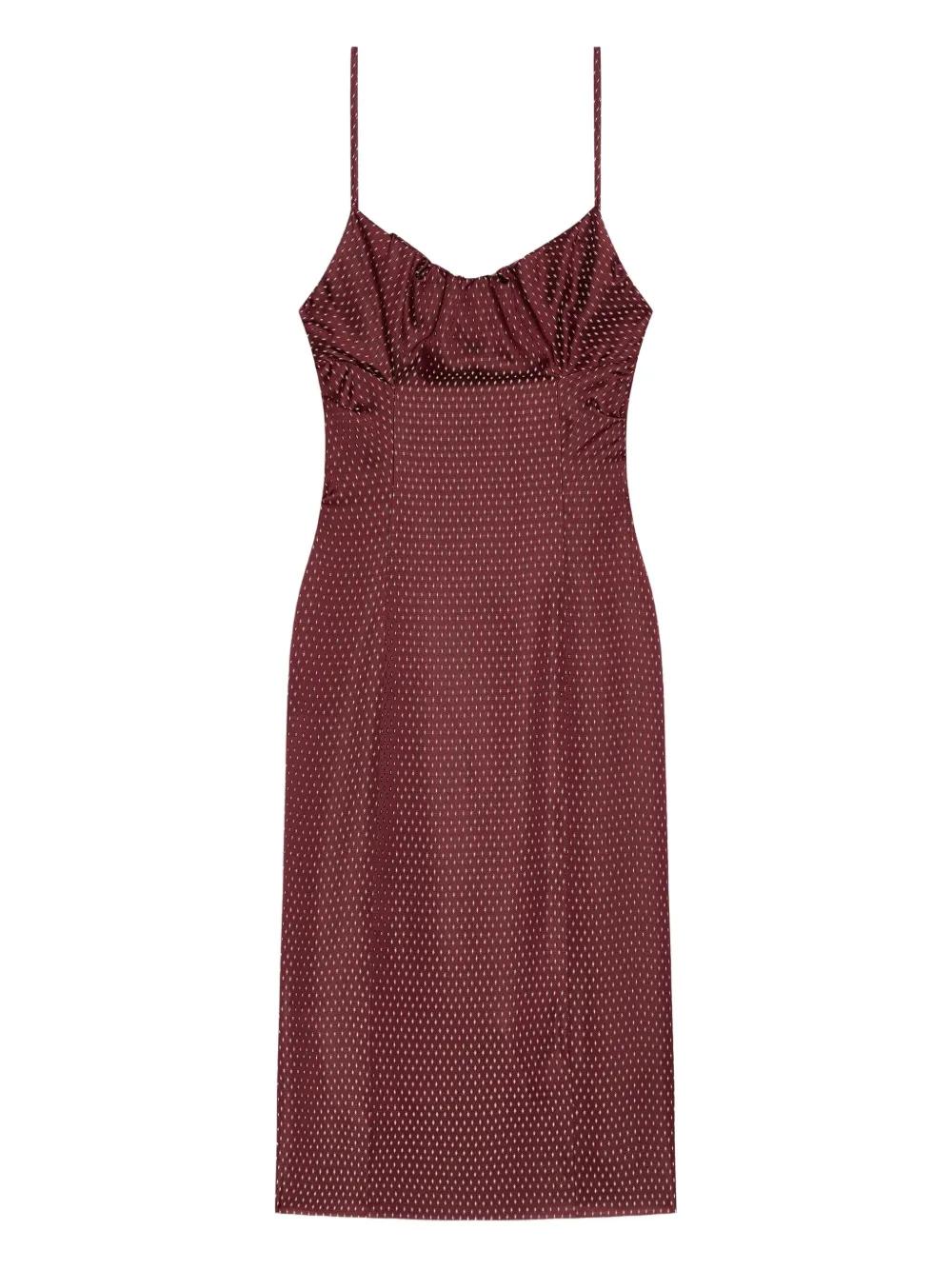 red polka-dot pattern spaghetti straps scoop neck midi length straight hem