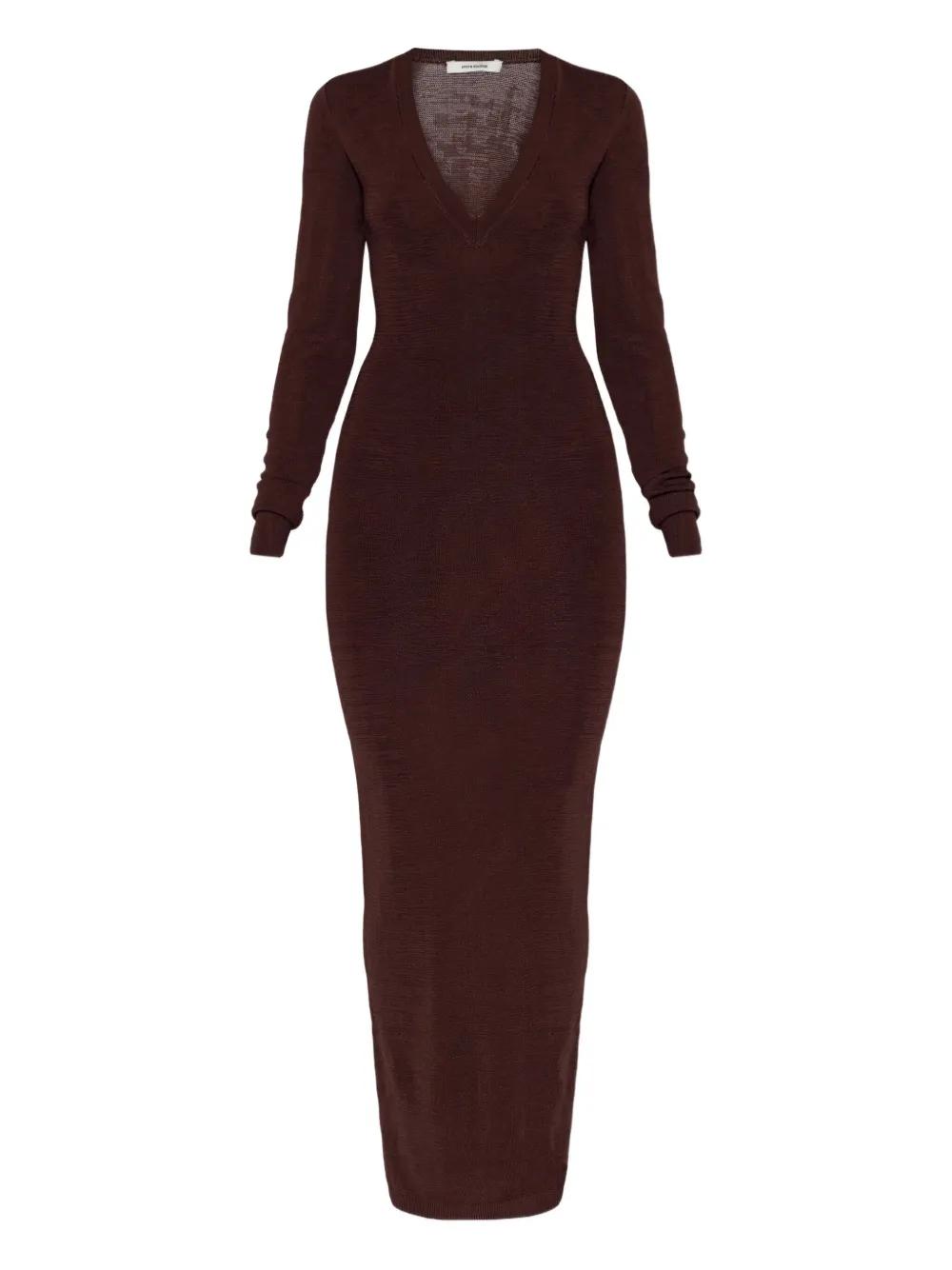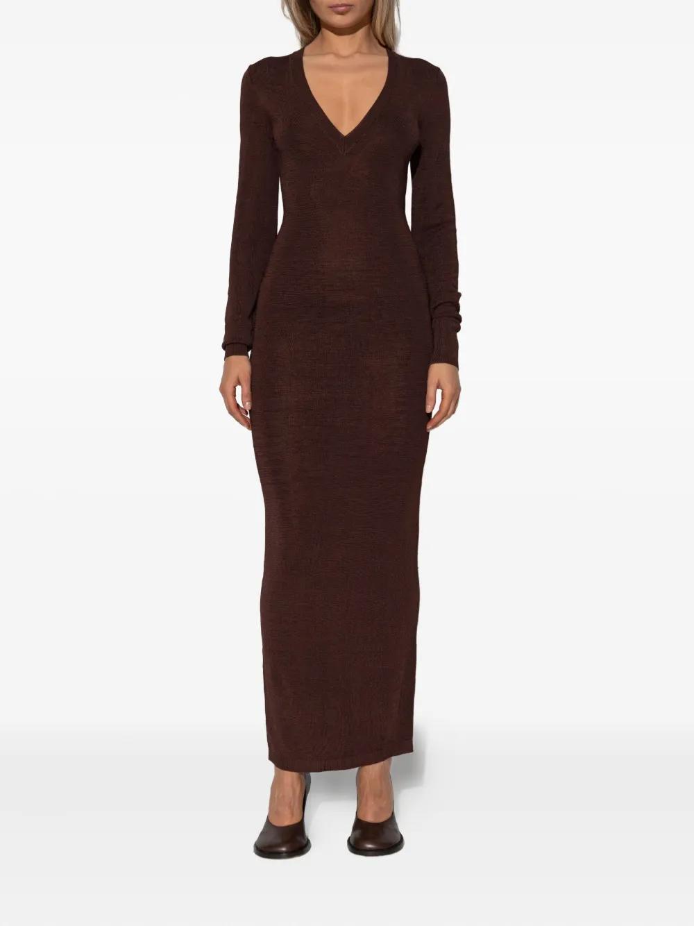 ENTIRE STUDIOS v-neck long-sleeve midi dress - Brown