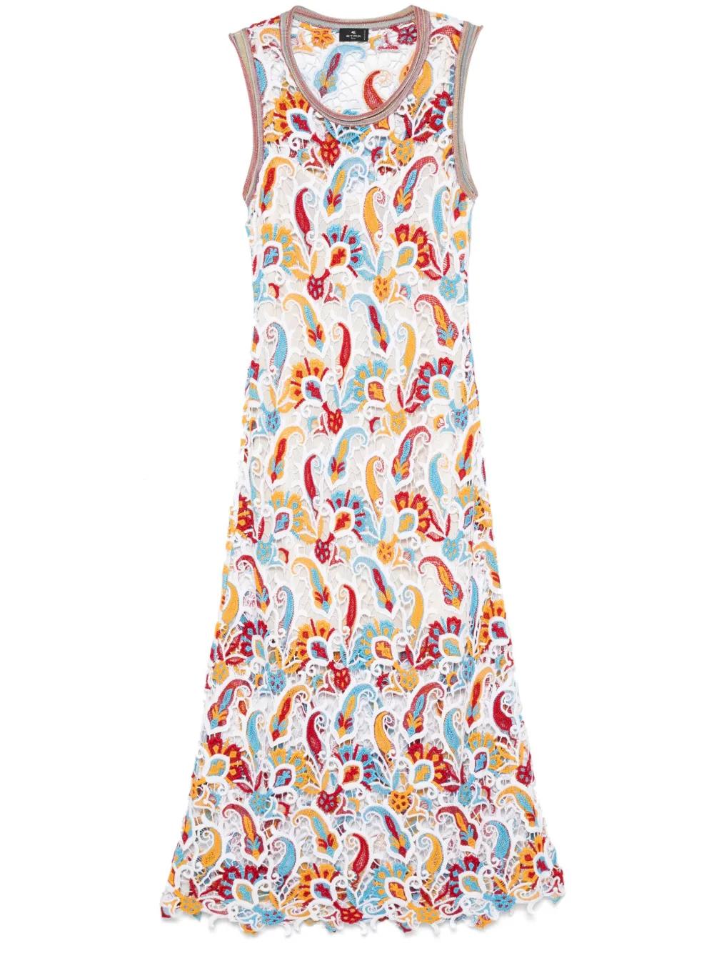 ETRO floral-lace midi dress - White