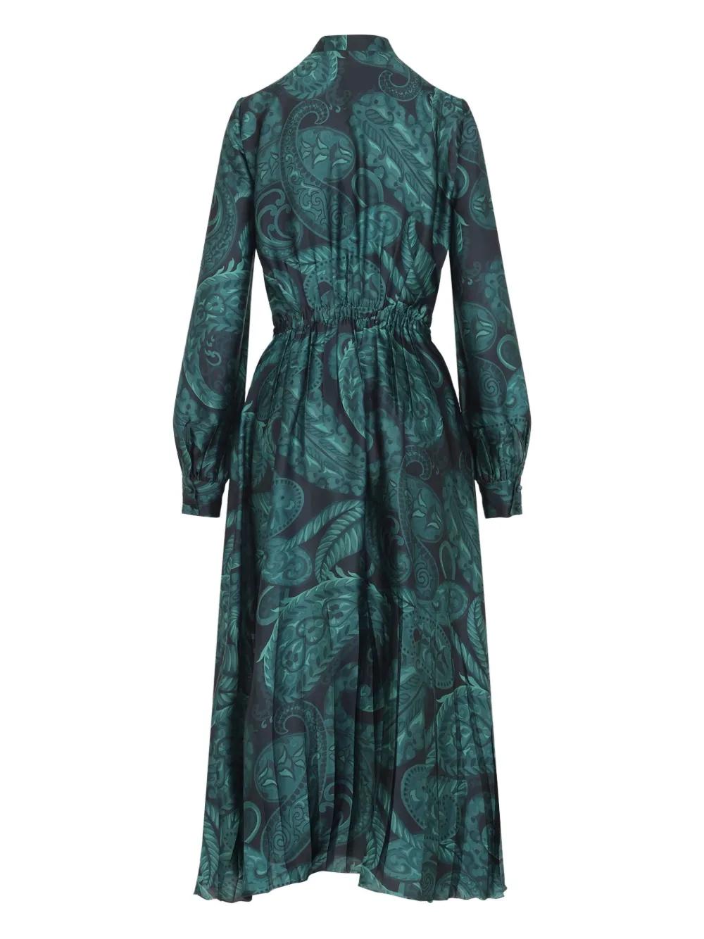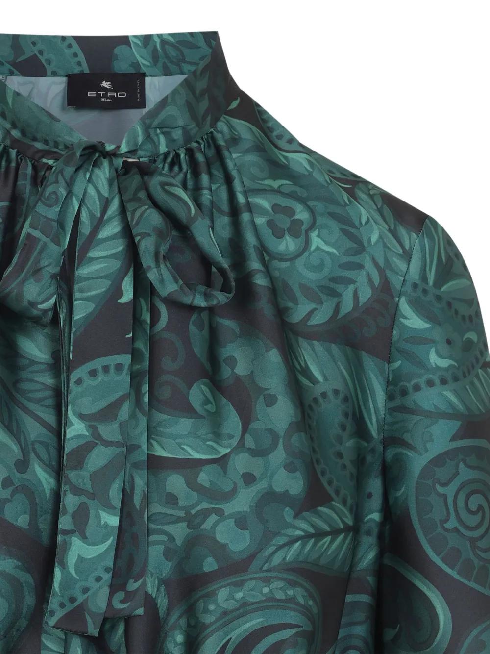 green and black paisley print tie fastening elasticated waist long sleeves buttoned cuffs