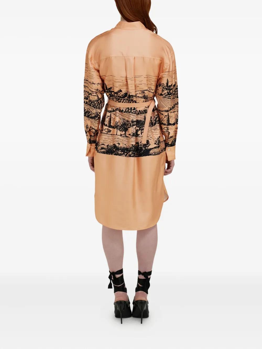 light orange front button fastening belted waist buttoned cuffs long sleeves