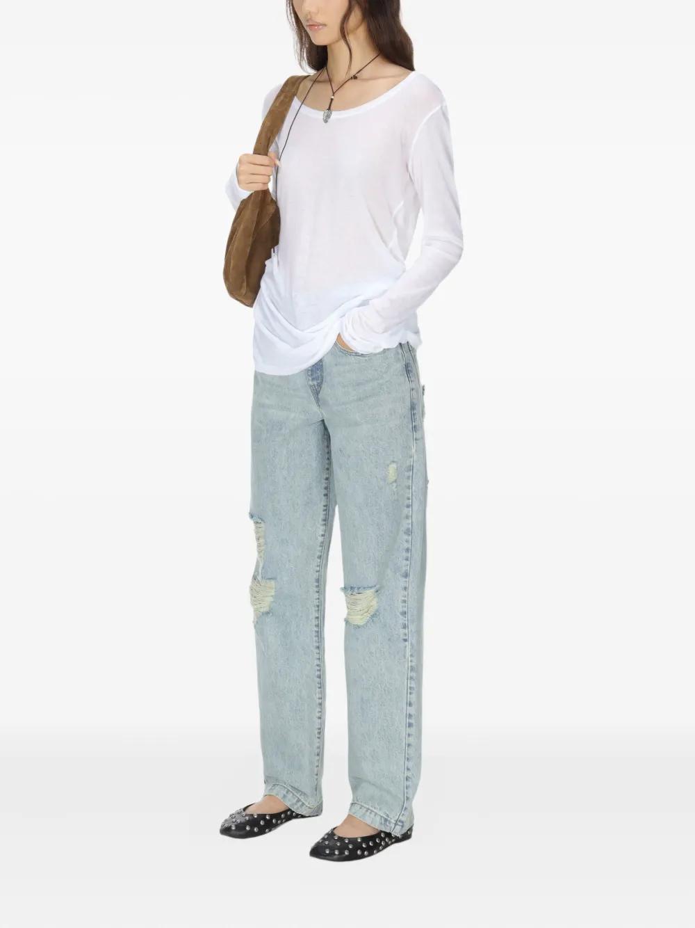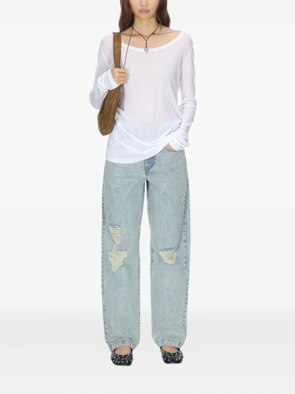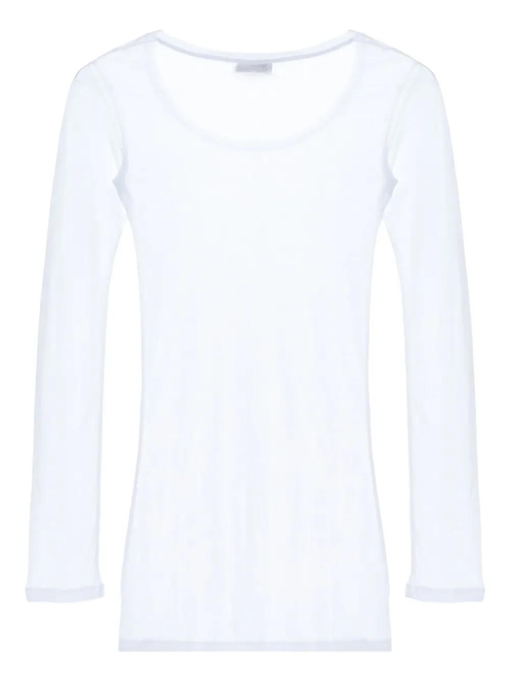 white round neck long sleeves sheer finish