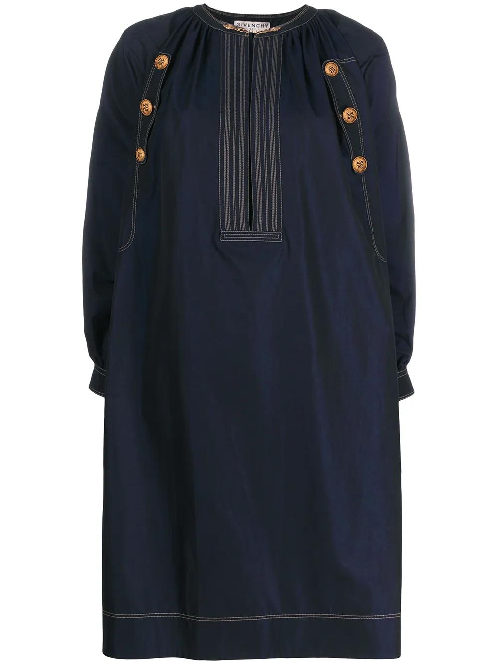 Givenchy is the name; style is the game. Made from cotton, this navy blue dress has a round neck, long sleeves, a relaxed style, gold-tone hardware and a panel at the chest. Up your sartorial game.