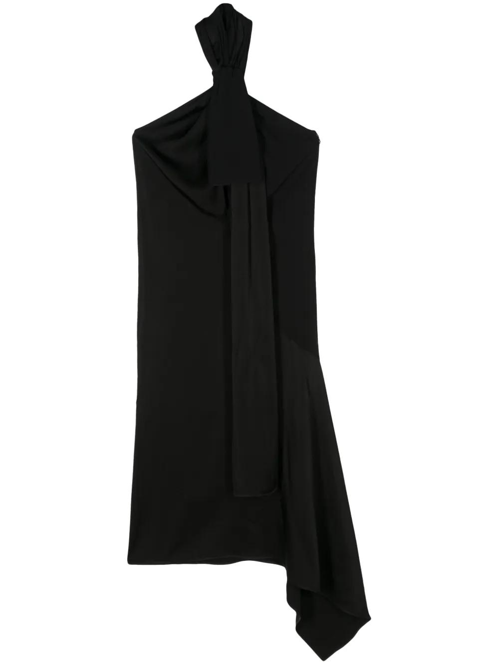 black knot detailing halterneck rear zip fastening sleeveless asymmetric hem