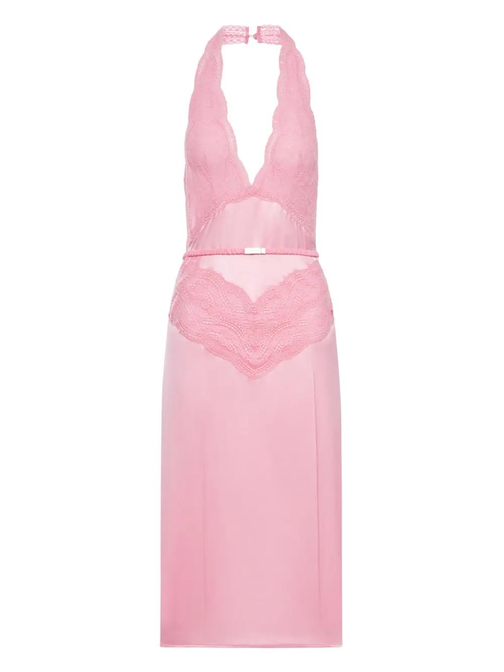 Gucci lace-panel satin halterneck dress - Pink