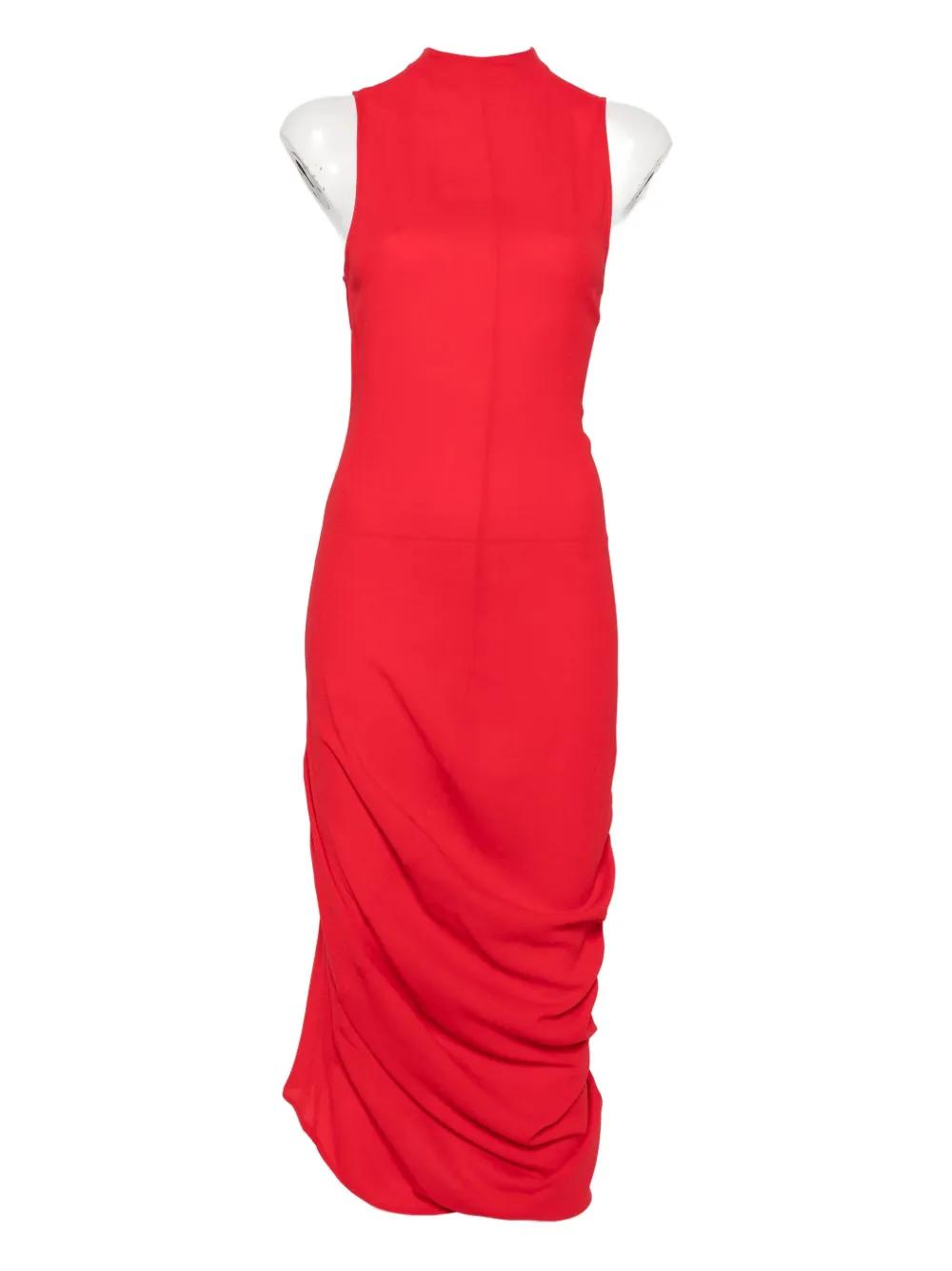 black lambskin smooth grain tonal stitching dart detailing at the chest halterneck square neck concealed rear zip fastening adjustable spaghetti straps sleeveless rear slit straight hem