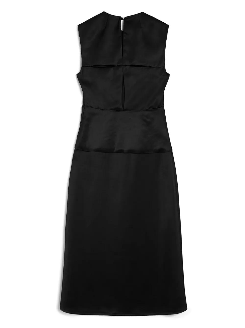 black round neck single rear button fastening cut-out detailing sleeveless straight hem mid-length