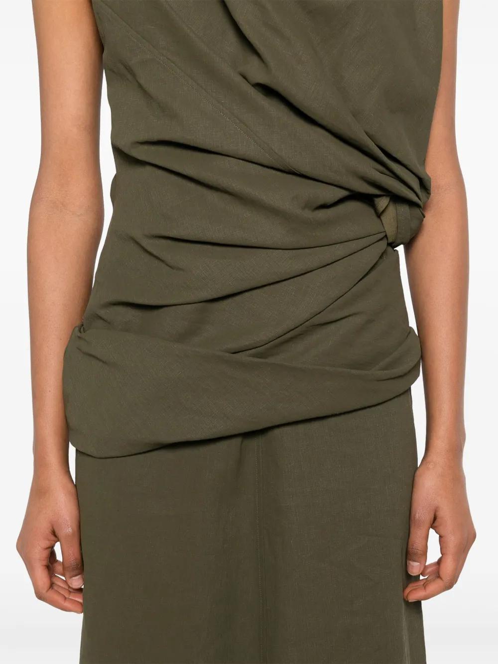 olive green shoulder zip fastening concealed side zip fastening sleeveless rear slit