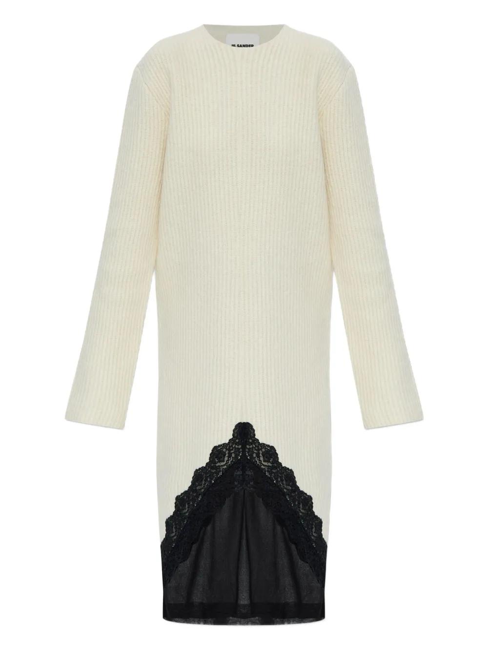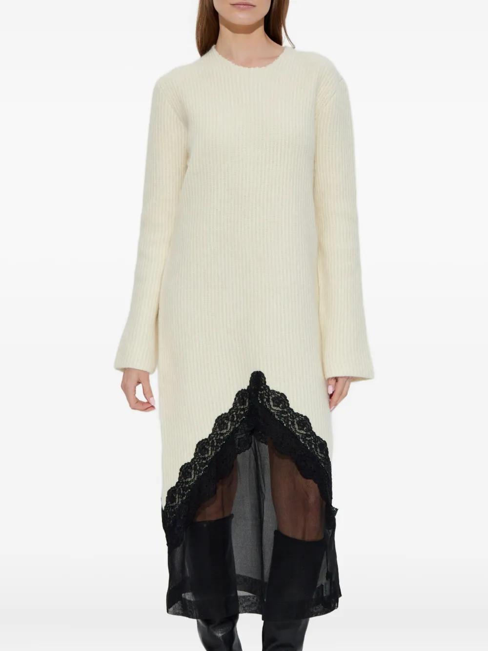 off-white lace trim panel detail long sleeves round neck ribbed knit