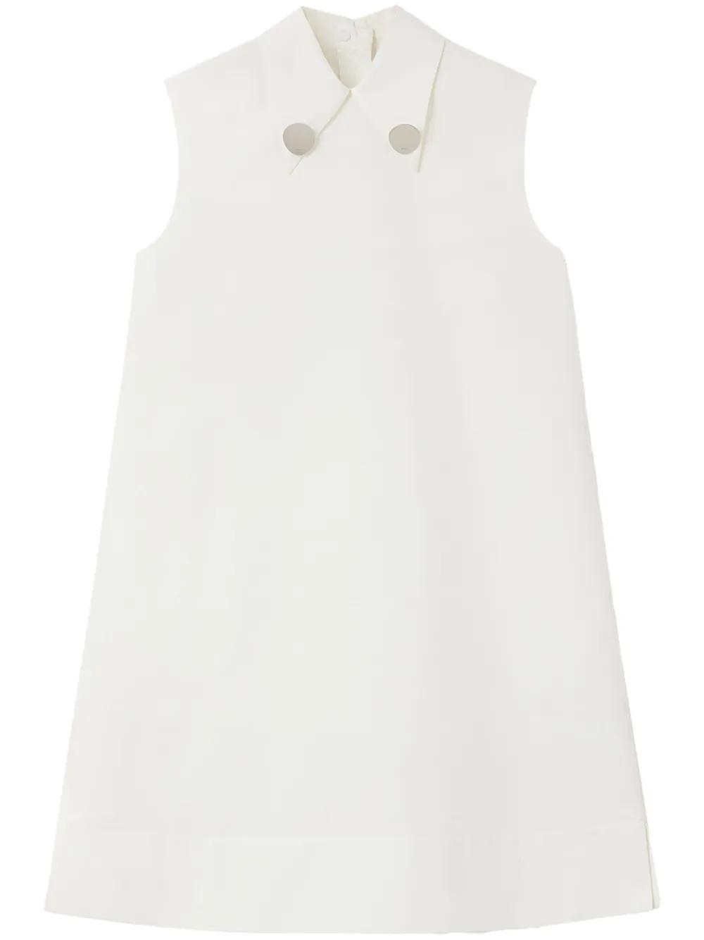 optical white cotton-silk blend straight-point collar rear button fastening sleeveless straight hem above-knee length