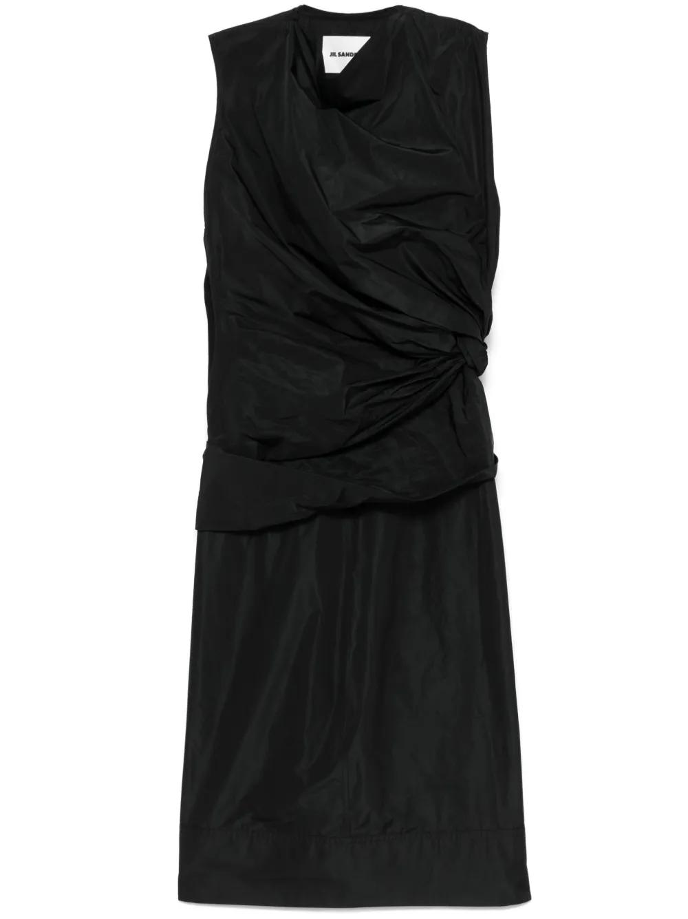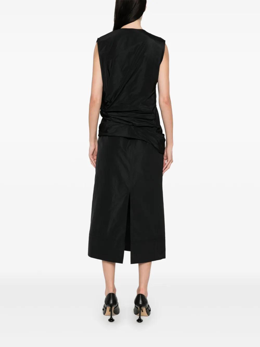 black concealed side zip fastening rear slit draped detailing sleeveless