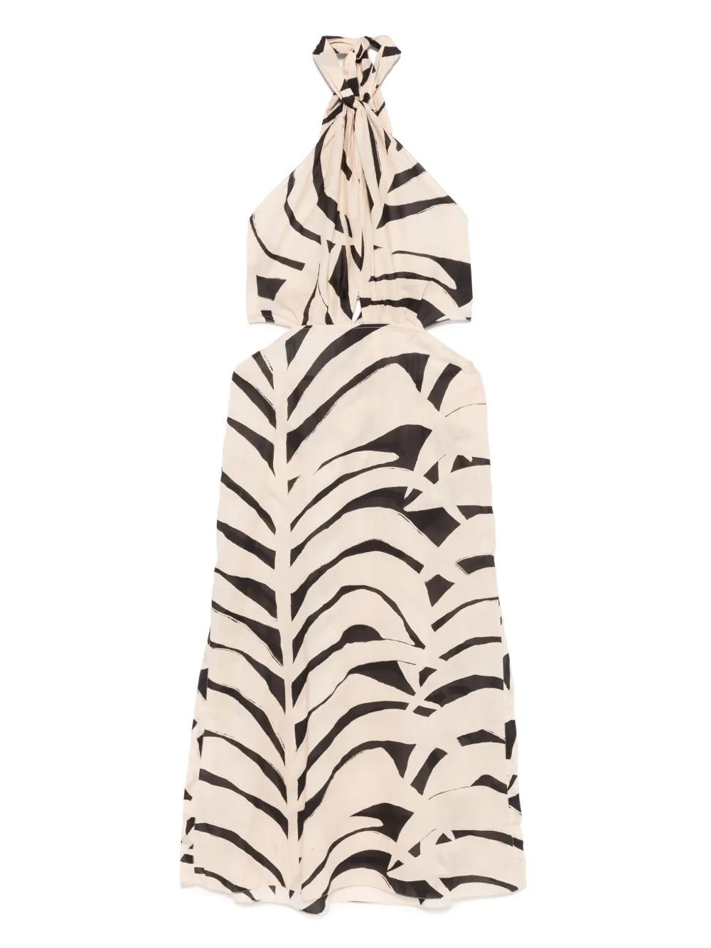 beige halterneck tie fastening all-over graphic print cut-out detailing open back