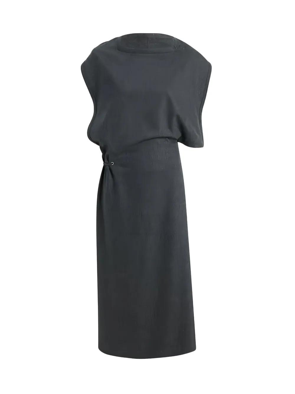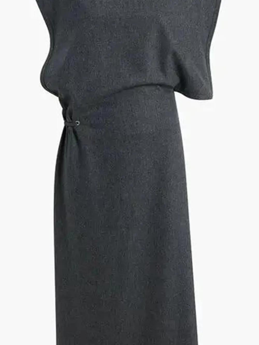 dark grey wool-cashmere blend tie detail mock neck short sleeves draped