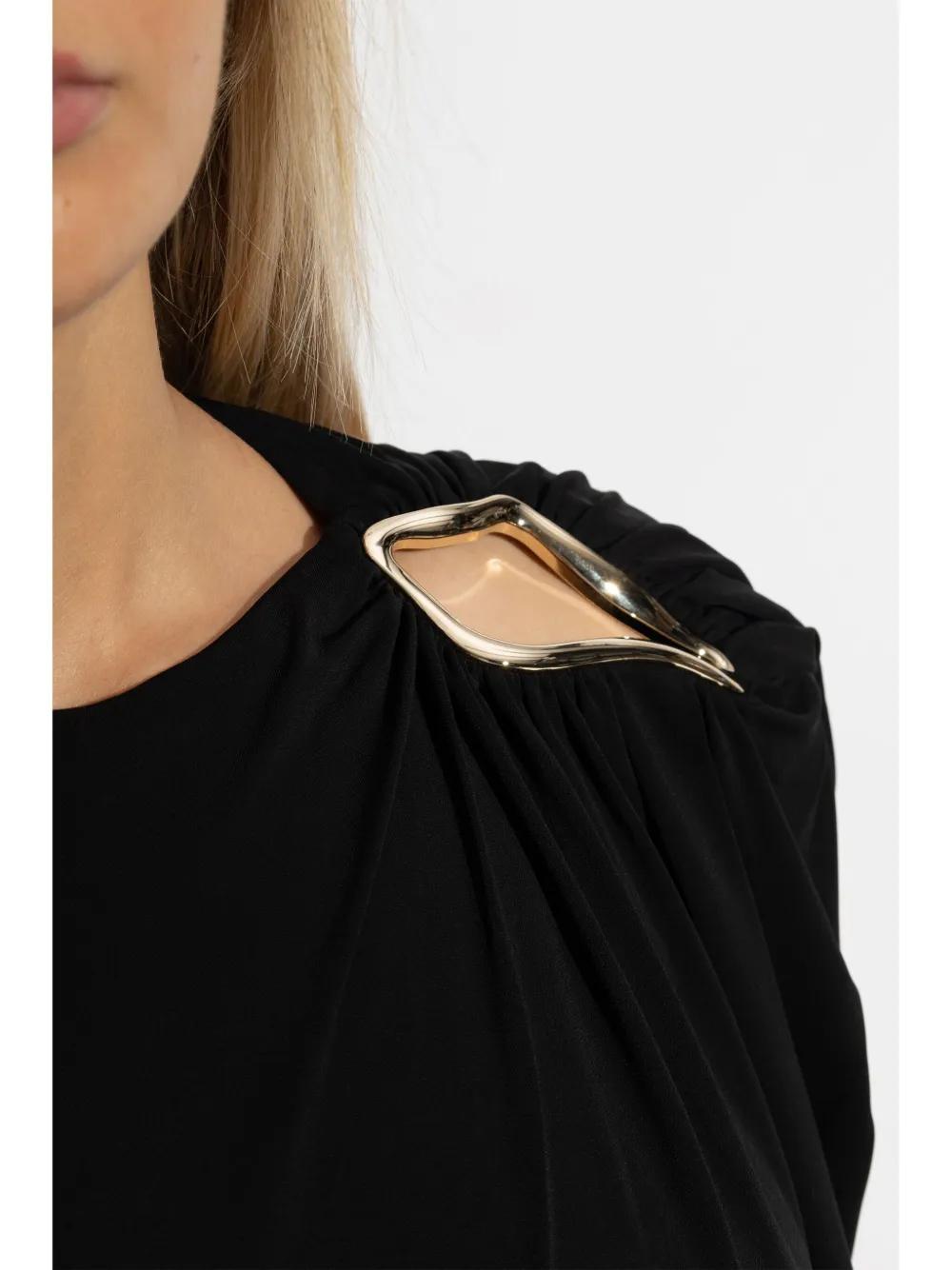 black cut-out detailing silver-tone hardware draped detailing crew neck sleeveless keyhole detail to the rear front slit straight hem