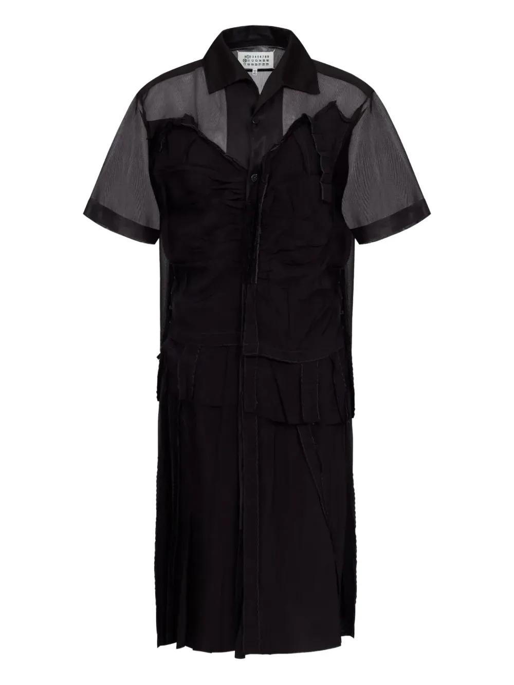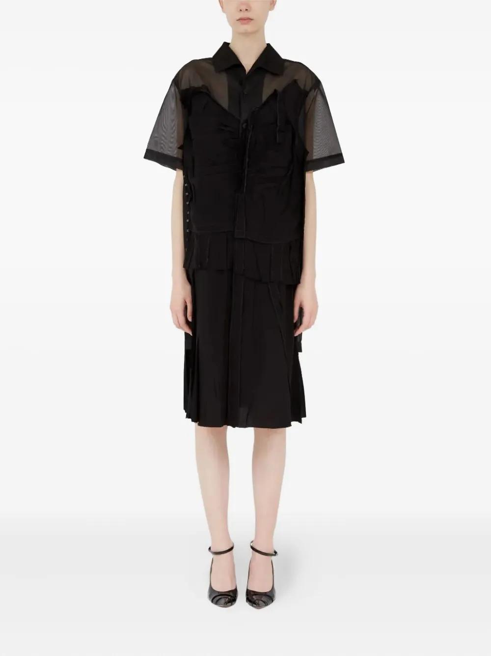 black sheer panelling pleated detailing ruffled detailing short sleeves