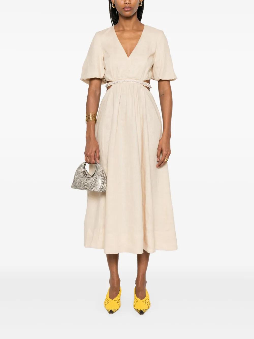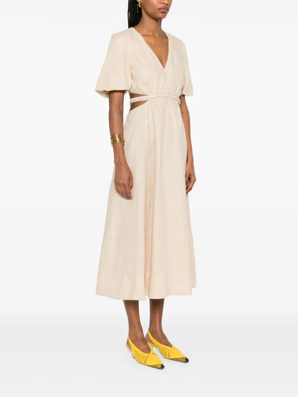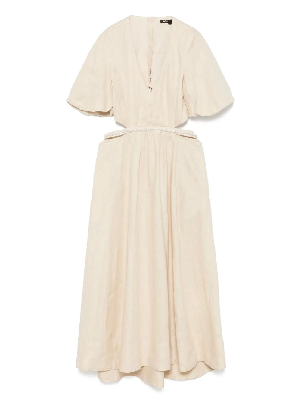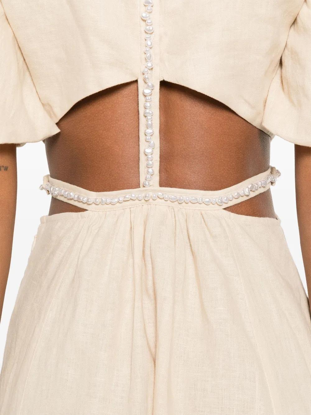 ecru rear press-stud fastening concealed side hook and zip fastening two side inset pockets cut-out detailing