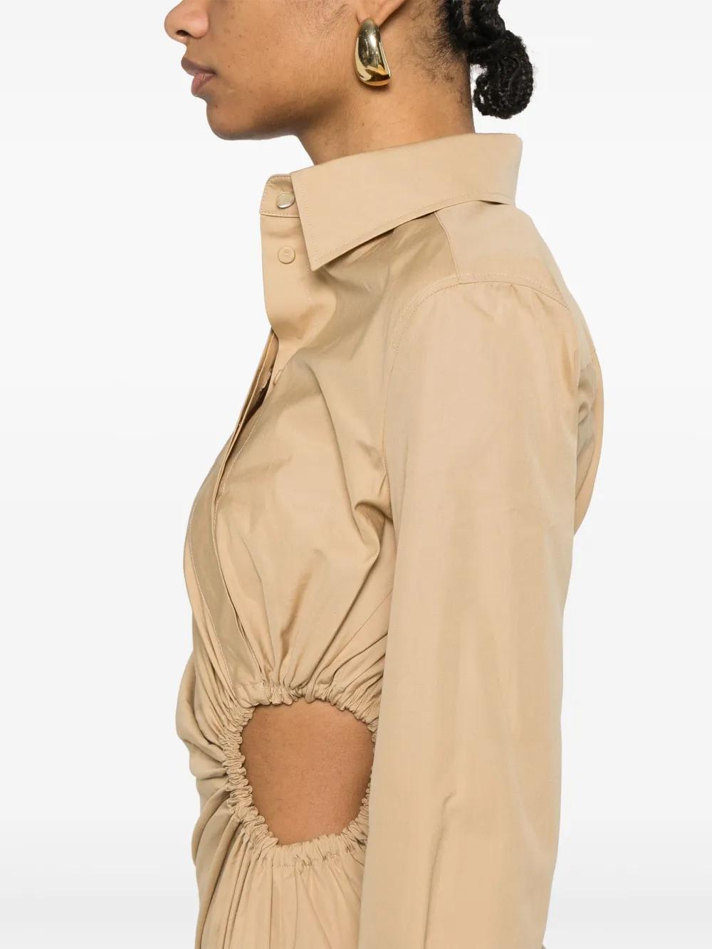 sand beige concealed front button fastening buttoned-cuff sleeves cut-out detailing draped detailing