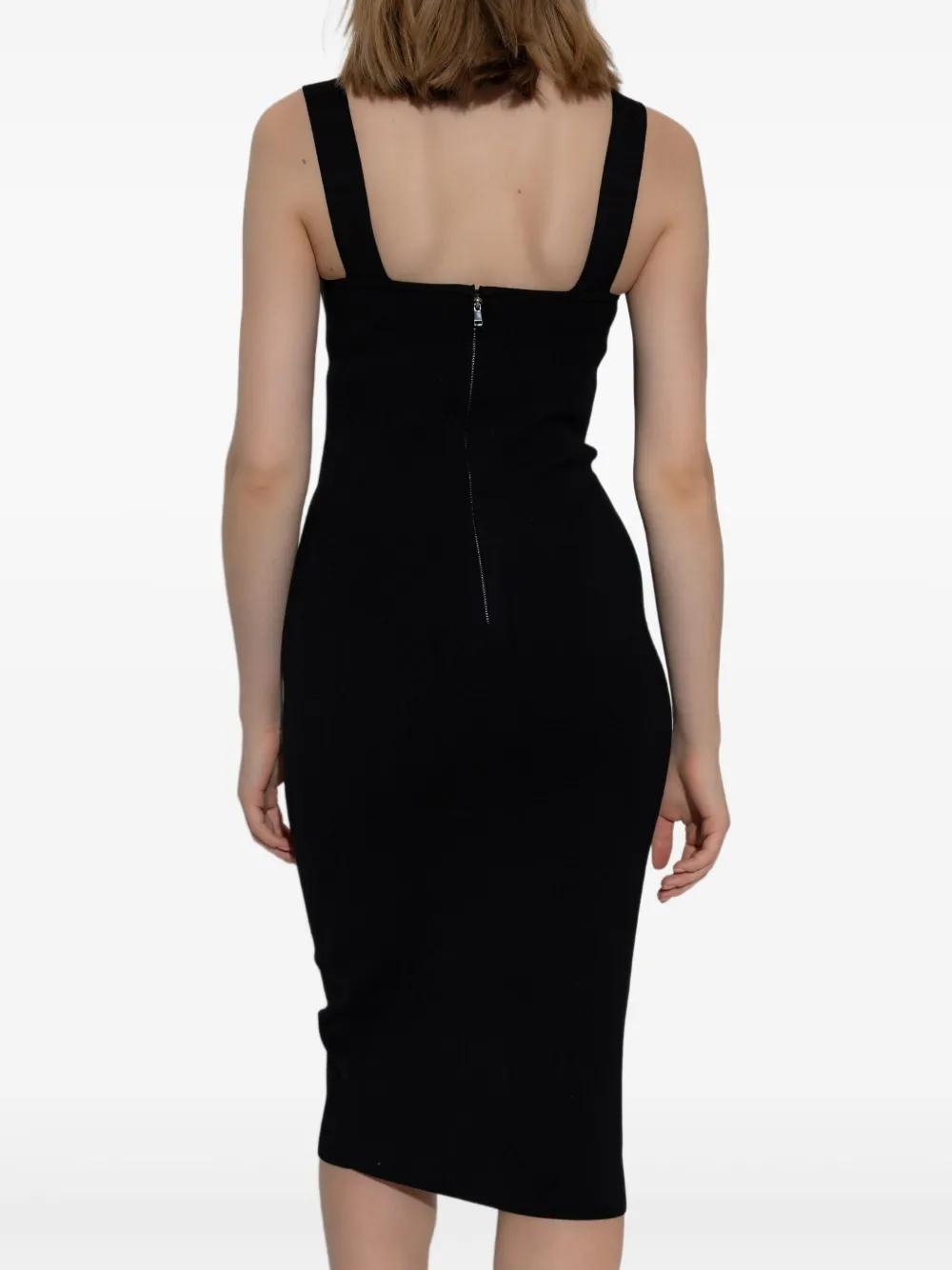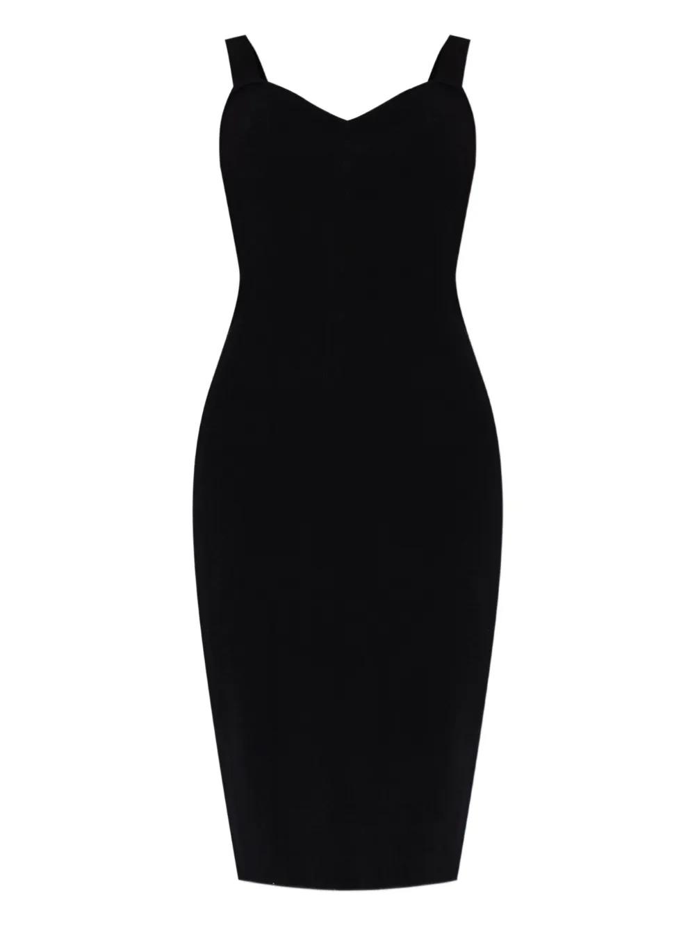 black sweetheart neckline two shoulder straps concealed zip fastening mid length