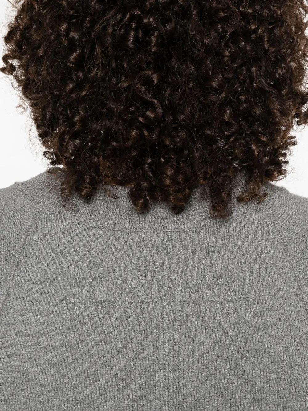 grey raglan sleeves round neck three-quarter sleeves straight hem