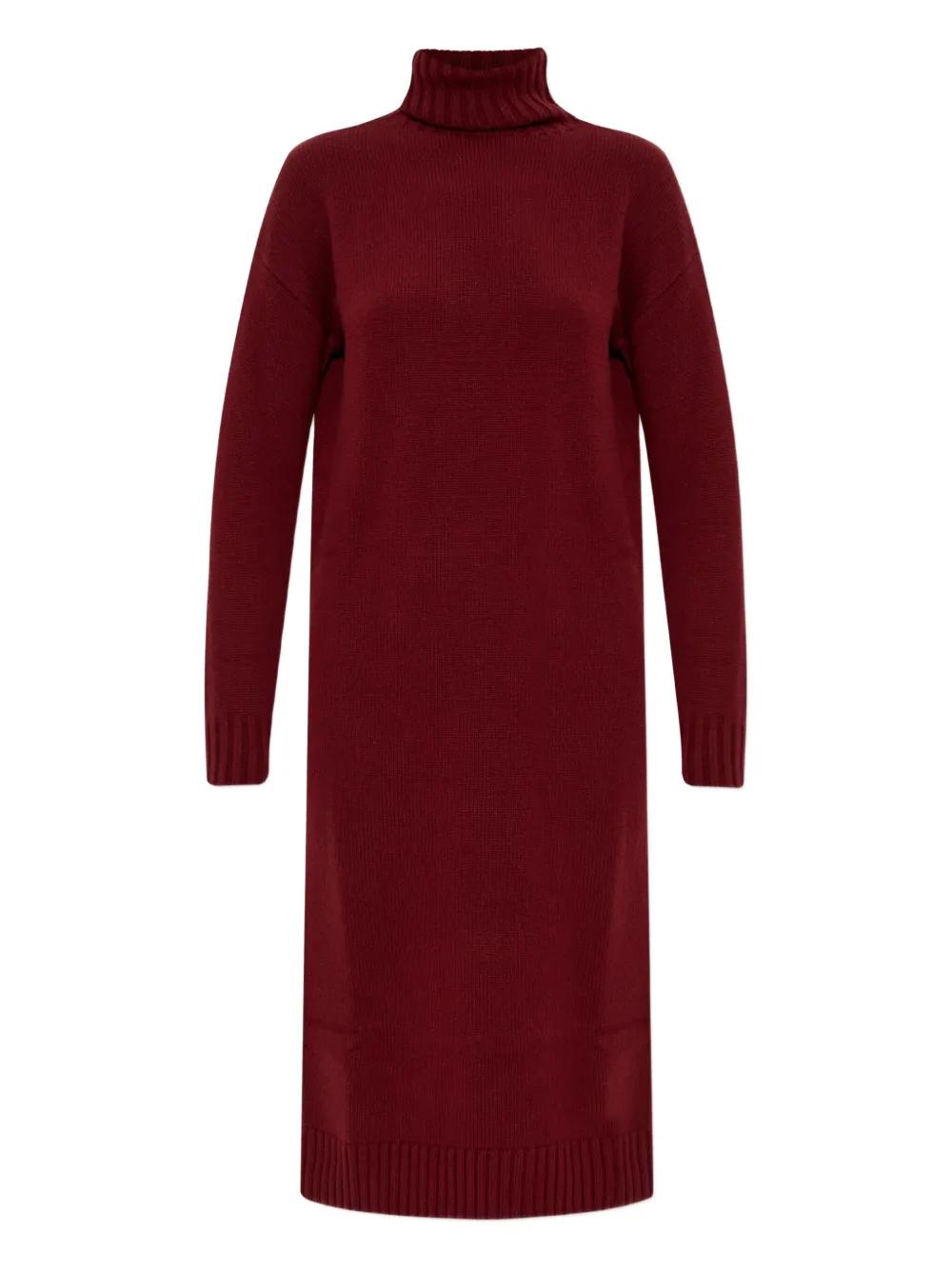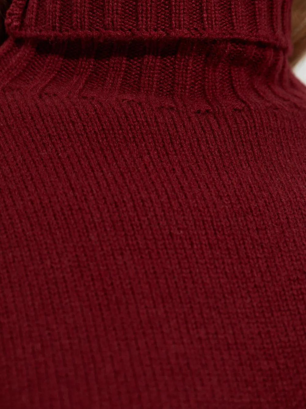 dark red roll neck long sleeves knitted ribbed detail midi length