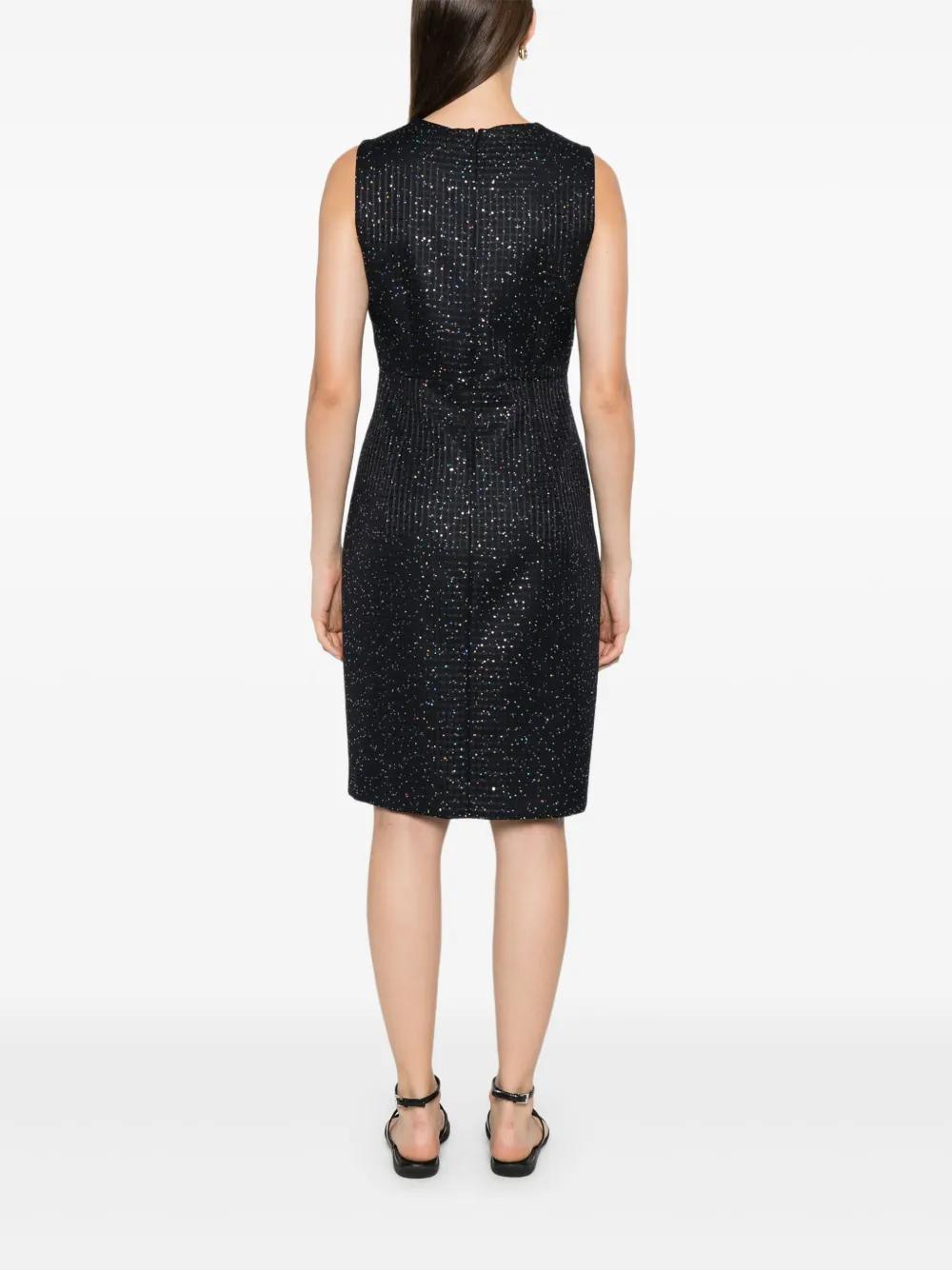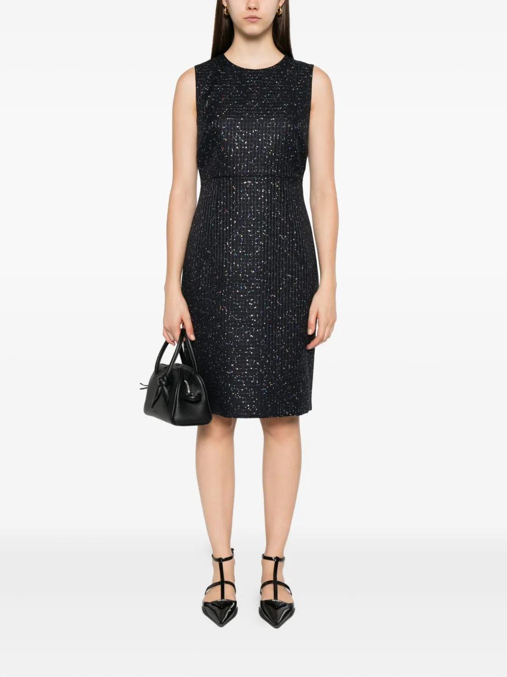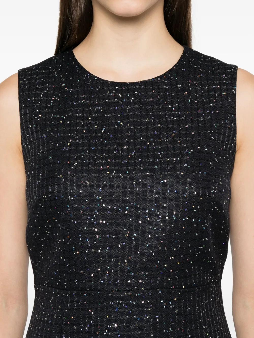 black sleeveless design round neck sequin embellishment straight hem subtle stripe pattern