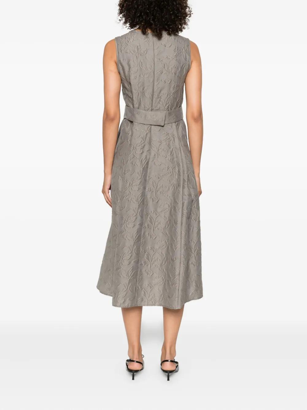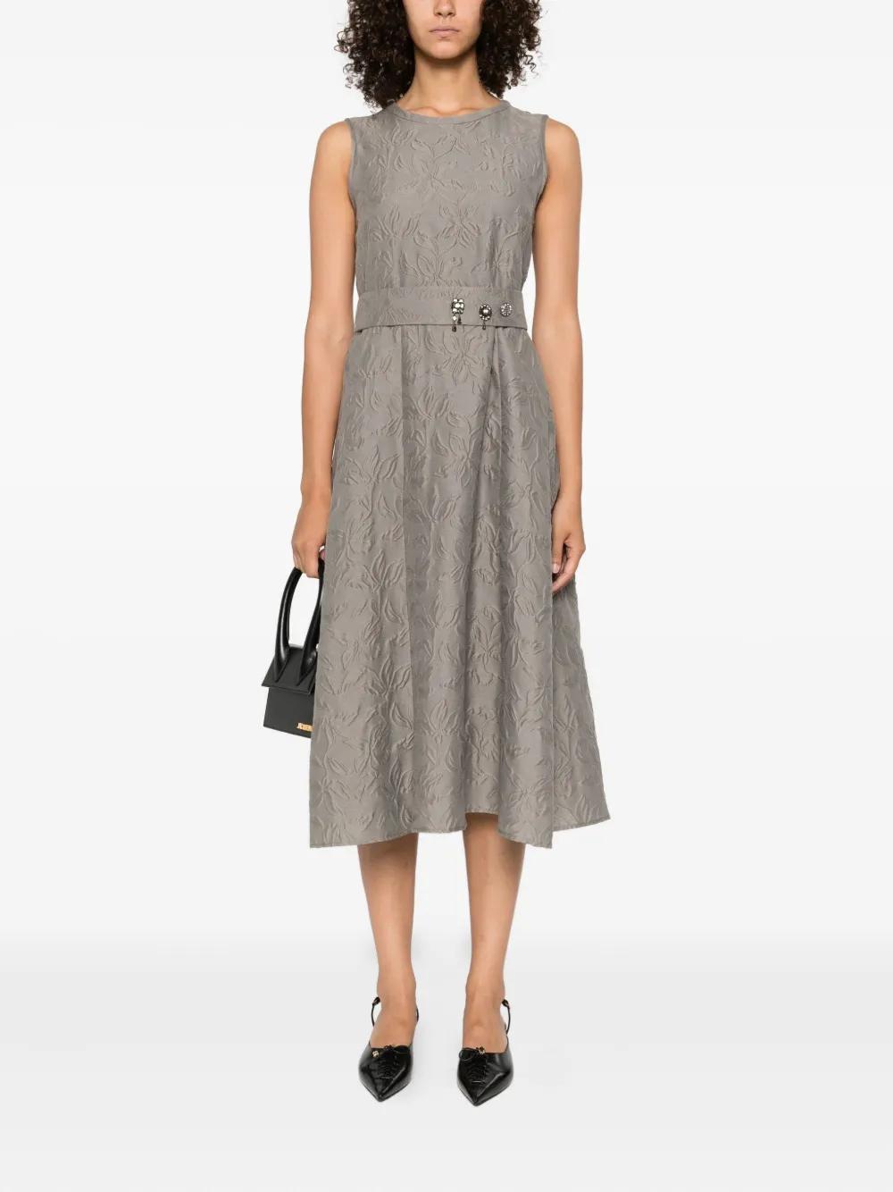 Max Mara Timeless floral-embellished belted midi dress - Grey