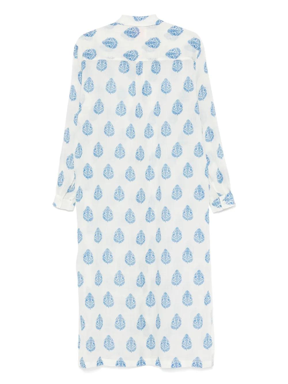blue/white front button fastening long sleeves all-over logo print