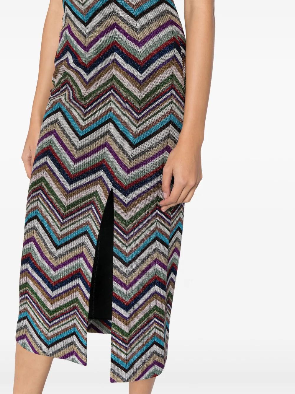 multicolour wool blend chevron print crew neck sleeveless racerback side slit mid-length The item you receive may differ slightly from the item photographed. This is due to the artisanal nature with which all Missoni products are constructed.