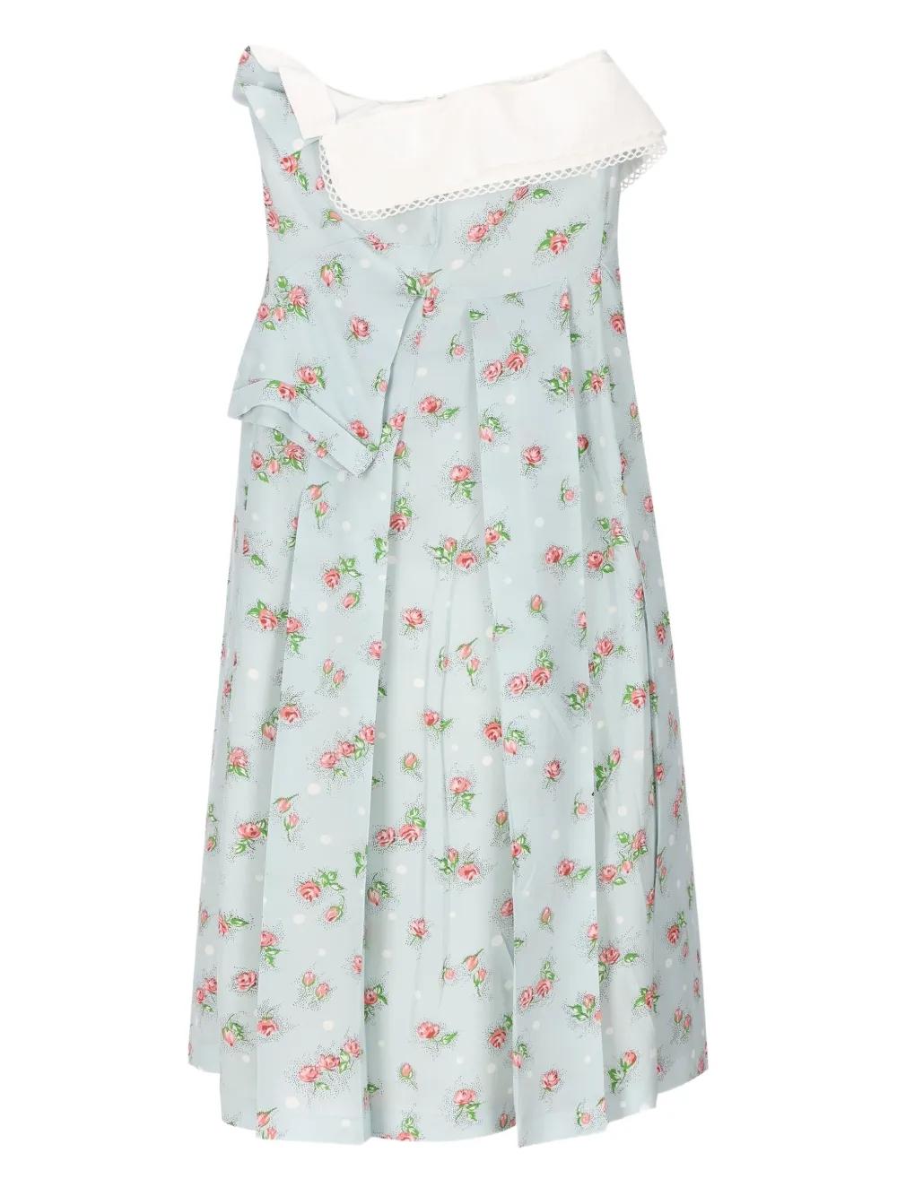 light blue satin V-neck short sleeves asymmetrical hem layered ruffles