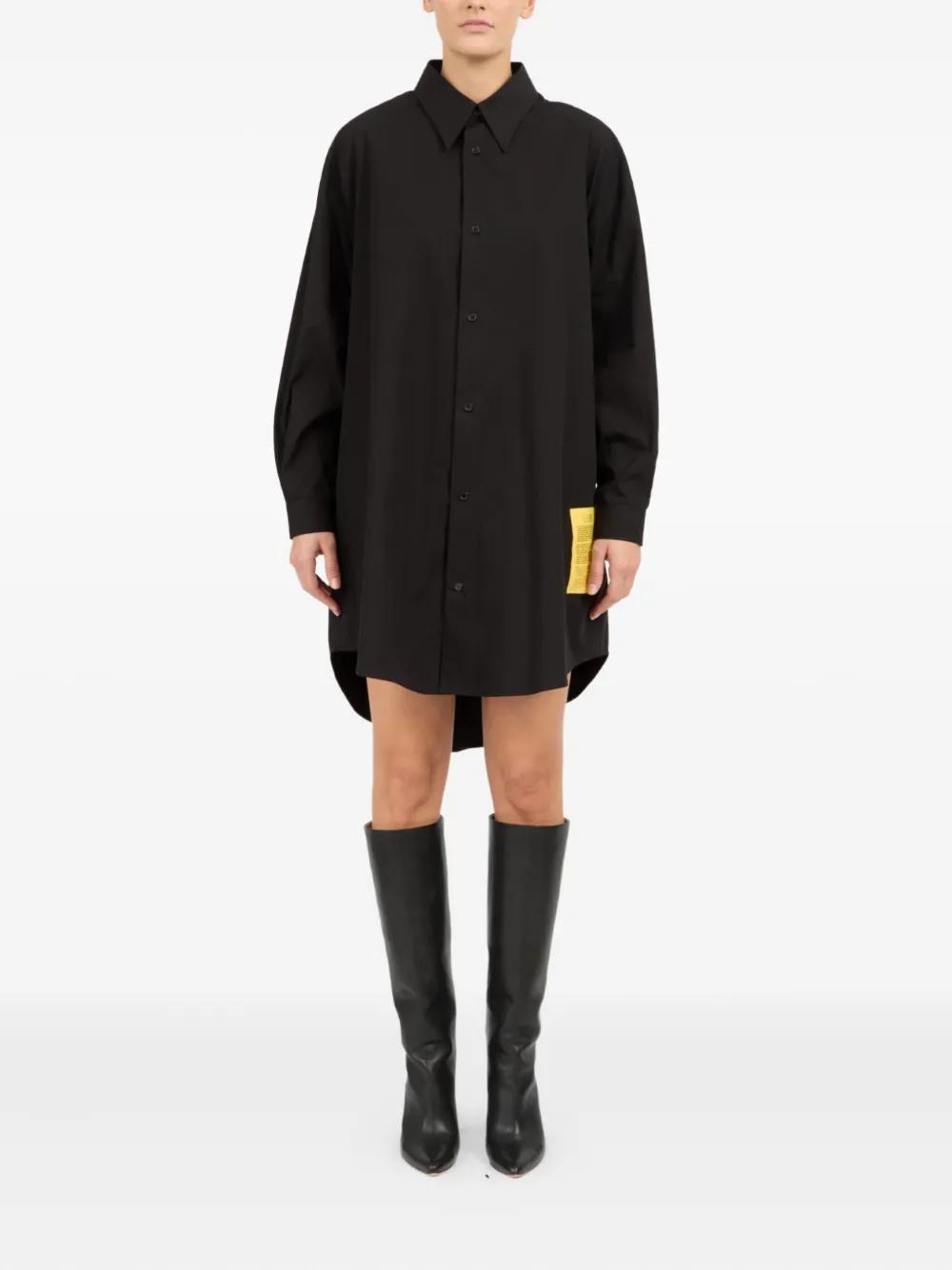 black front button fastening buttoned-cuff sleeves straight-point collar raw-cut hem