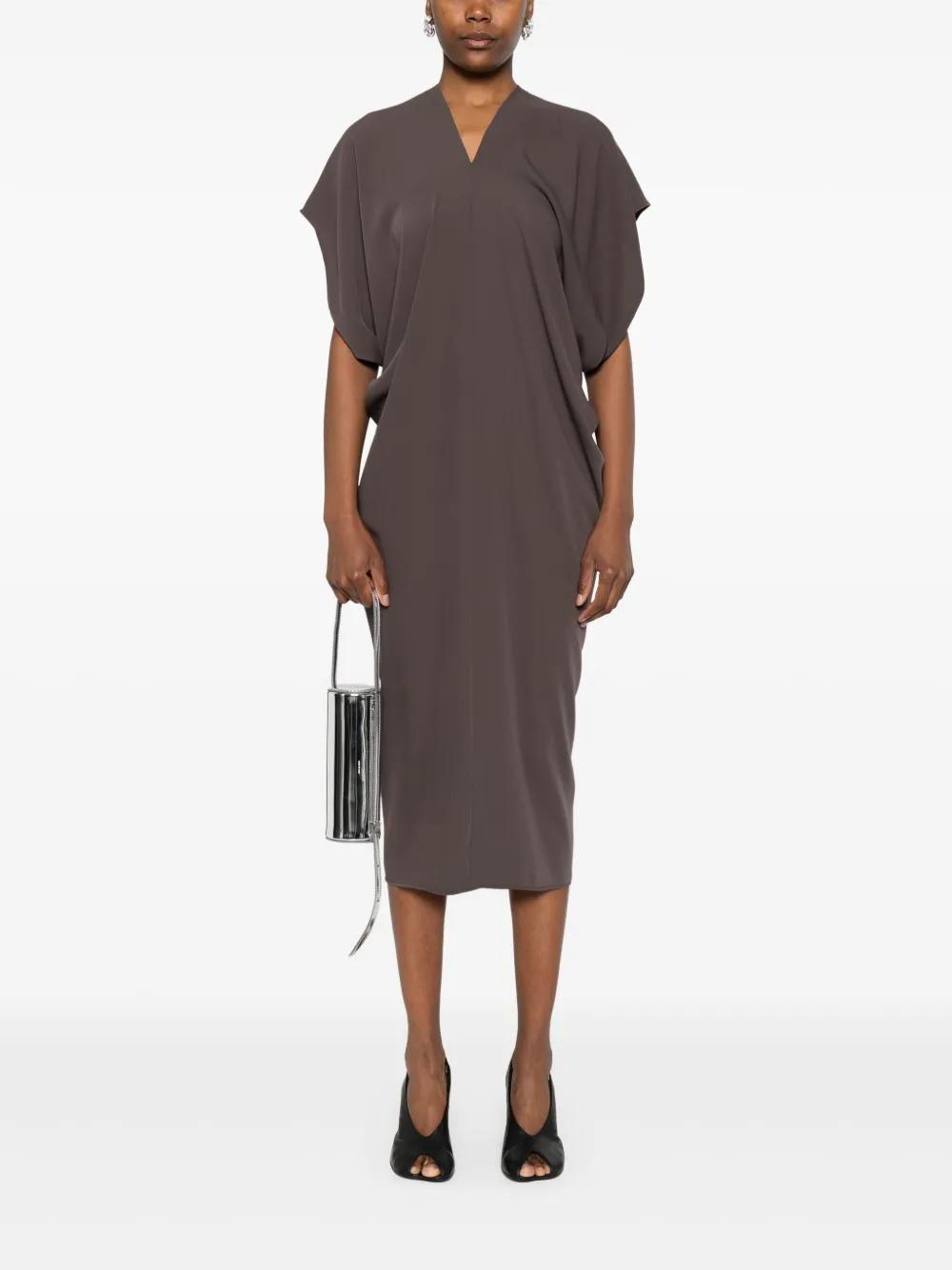 brown V-neck short sleeves draped detailing straight hem