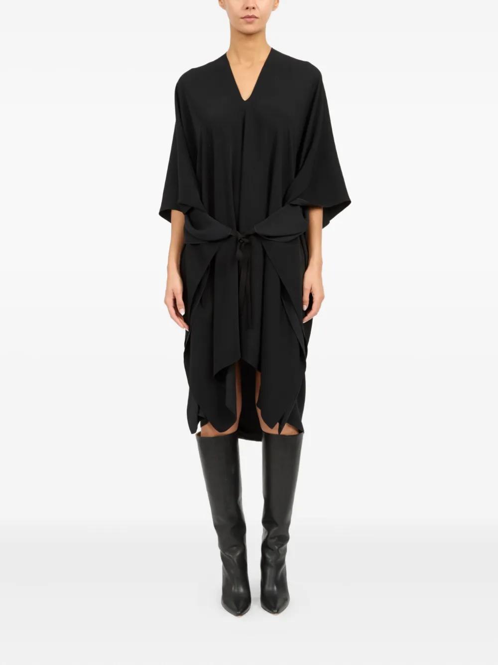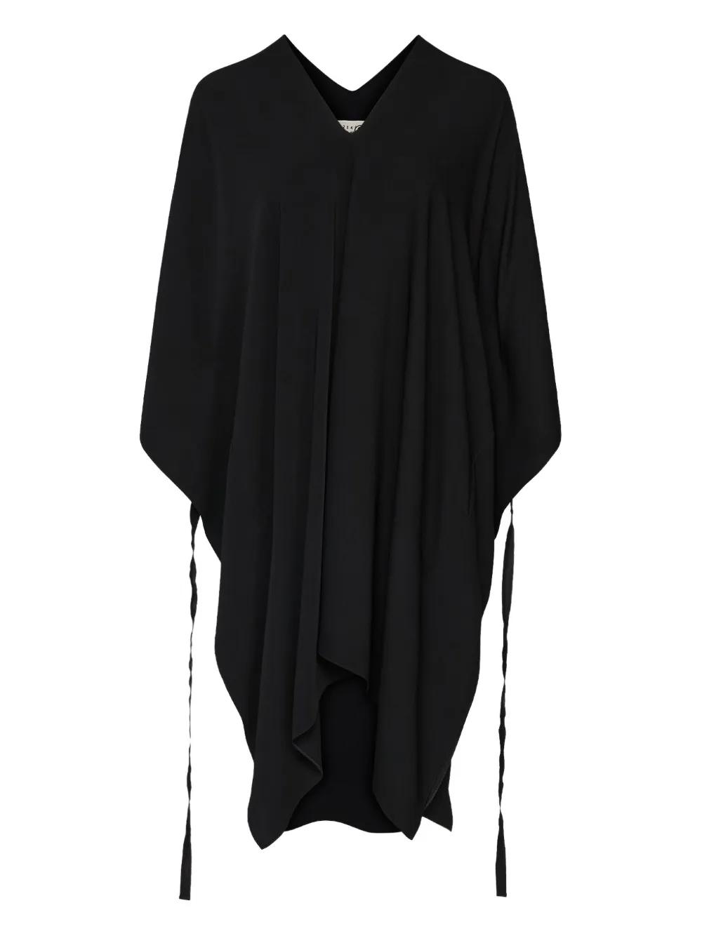 black front tie fastening drop shoulder short sleeves asymmetric hem