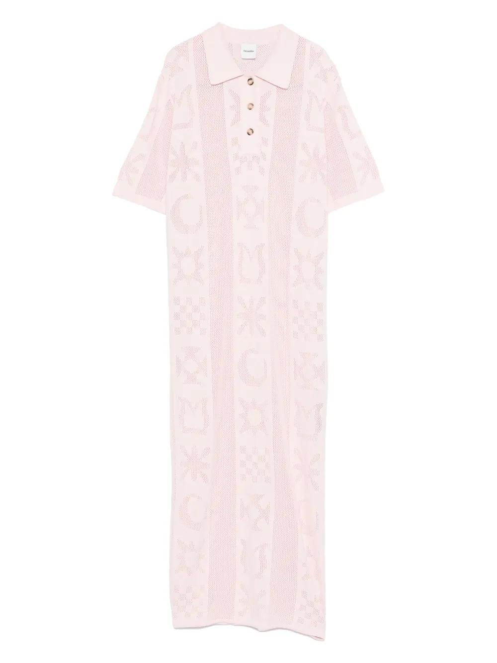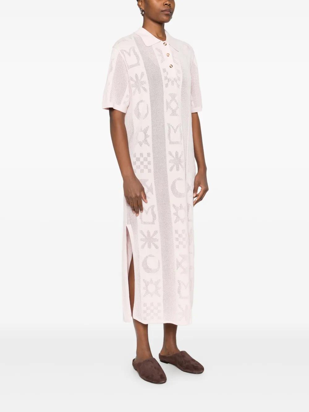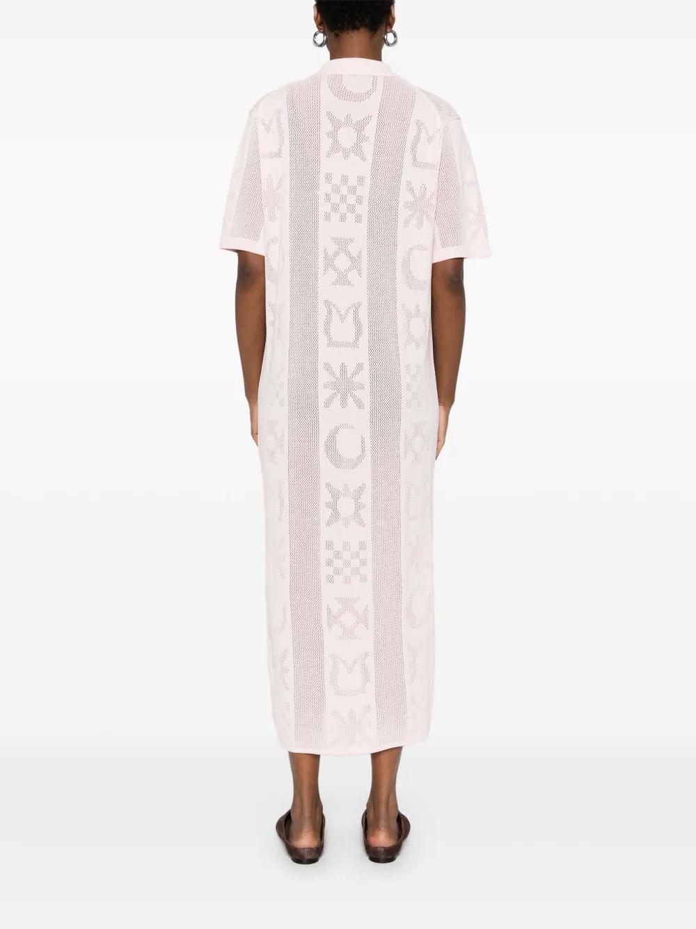 pink patterned knit polo neck short sleeves short front button fastening midi length