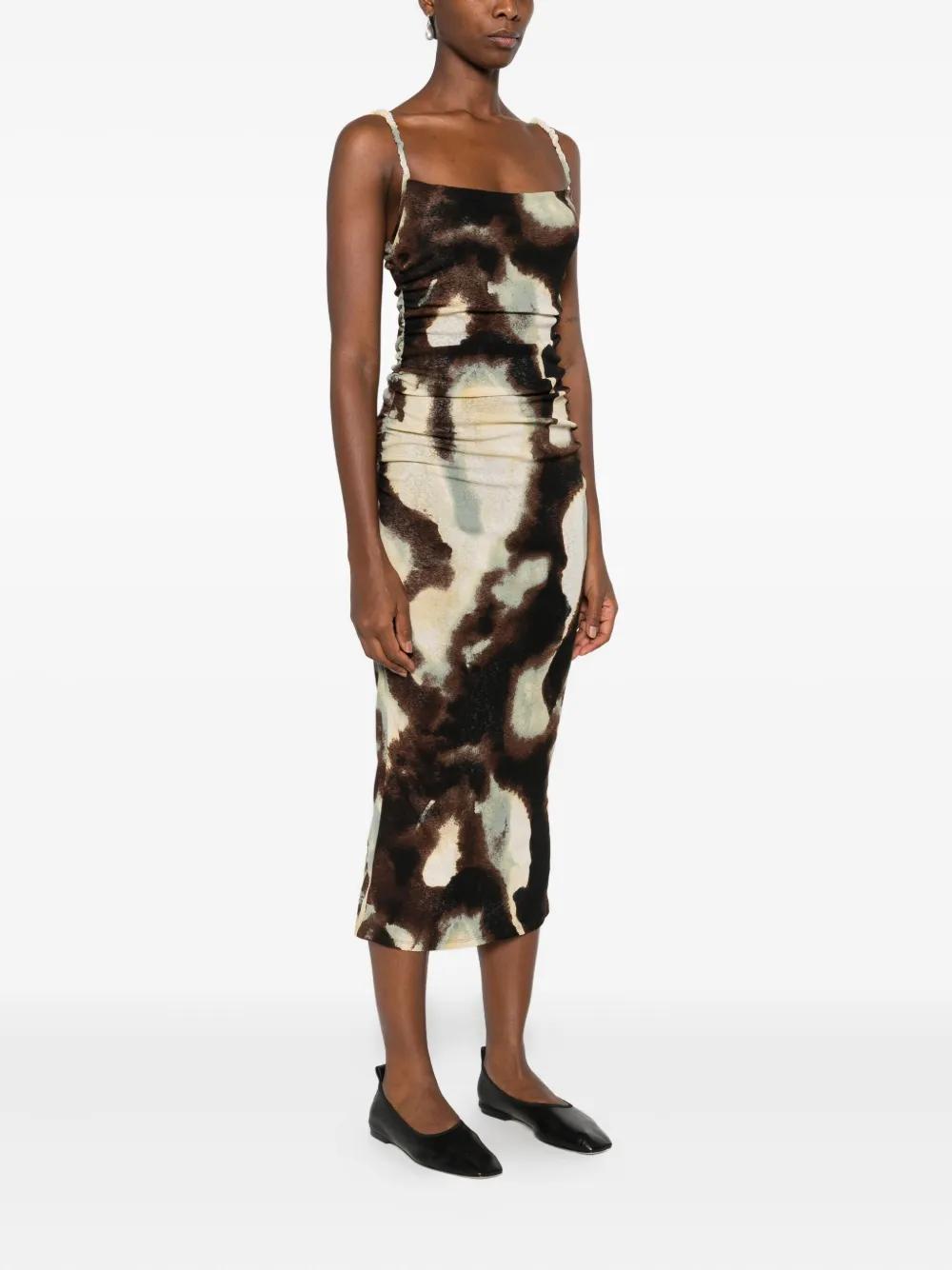 multi-colour printed ruched detailing spaghetti straps midi length