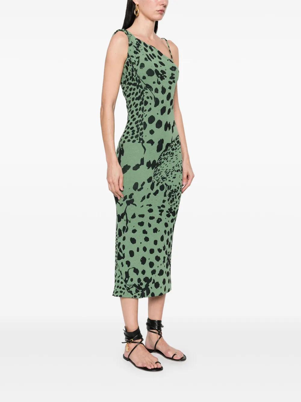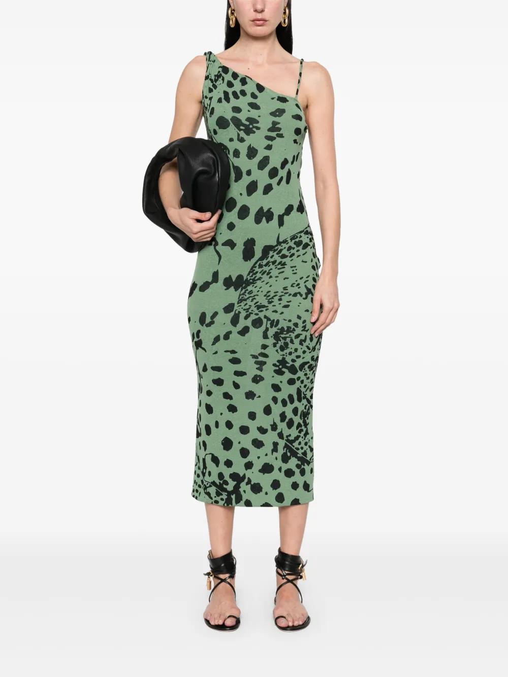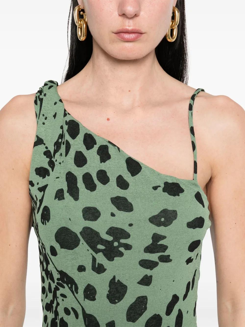 fern green all-over leopard print asymmetric neck rear slit