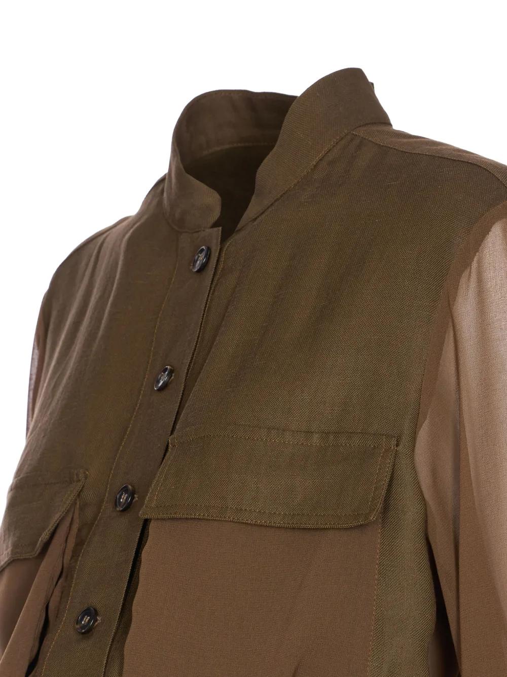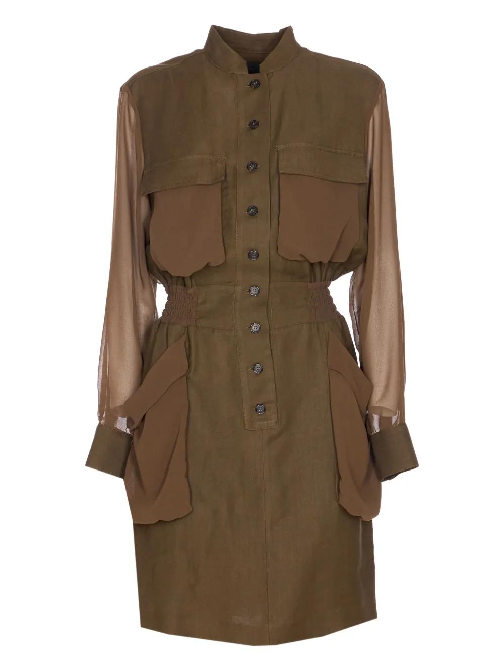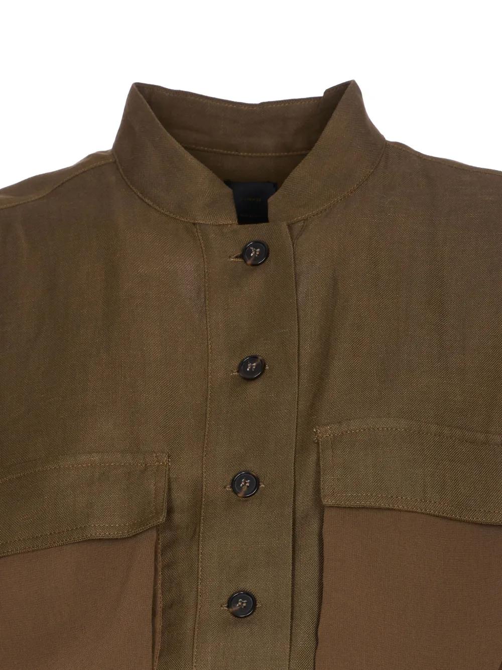 olive green front button fastening elasticated waistband two chest flap pockets two side patch pockets