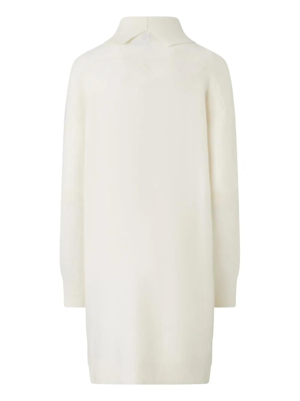 white cashmere blend ribbed knit mock neck long sleeves side slit elasticated cuffs straight hem embossed logo to the rear