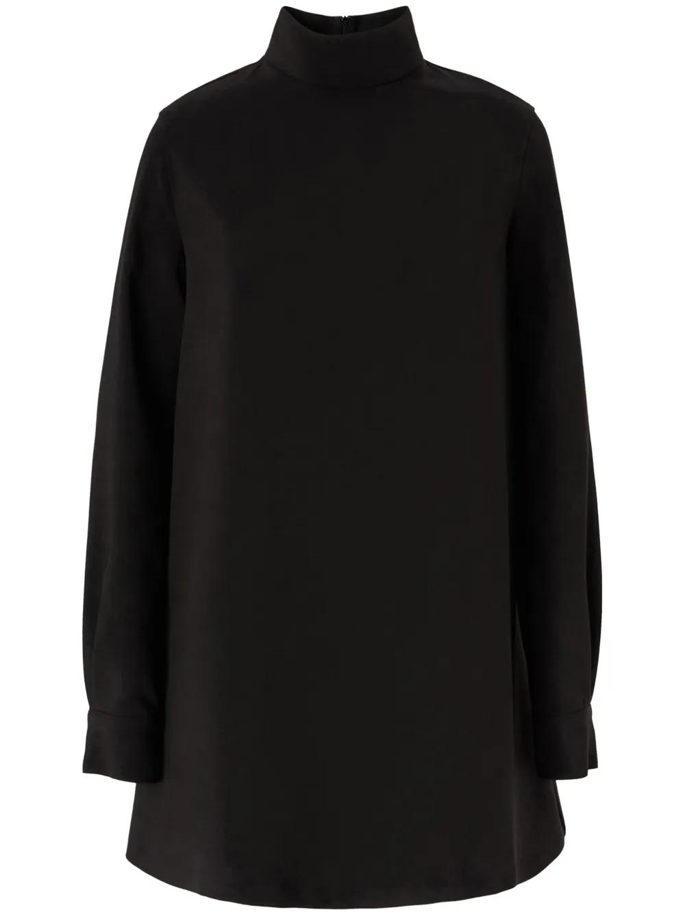 black stretch-design rear zip fastening high neck long sleeves buttoned-cuff sleeves straight hem thigh-length