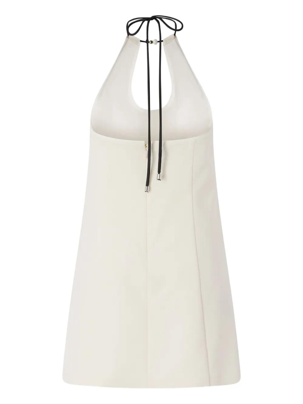 white halterneck tie fastening sleeveless keyhole detail mini length