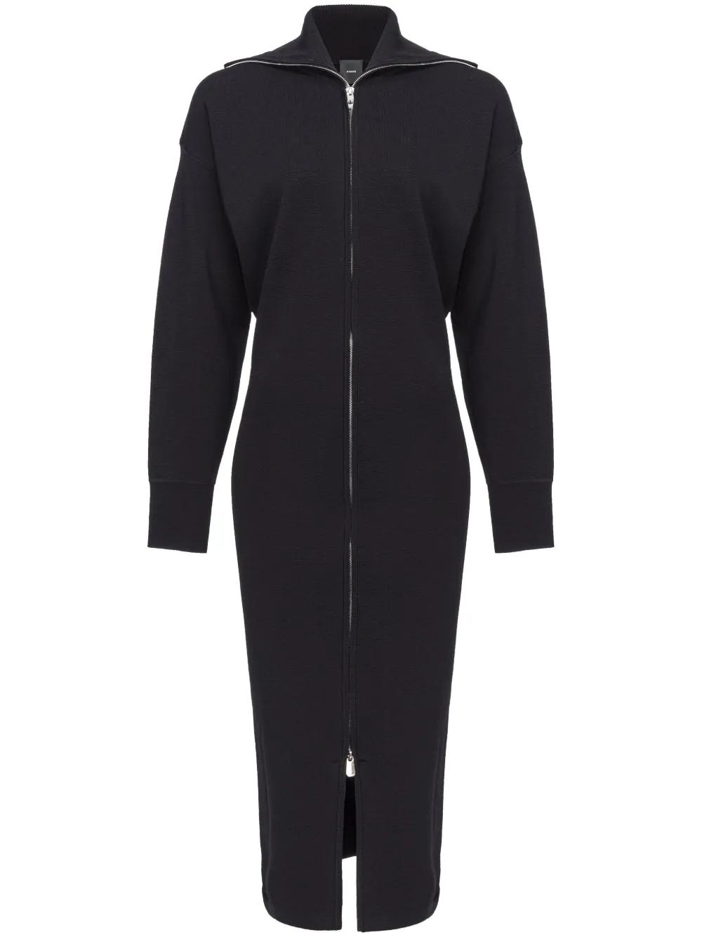black drop shoulder long sleeves elasticated cuffs front slit front two-way zip fastening