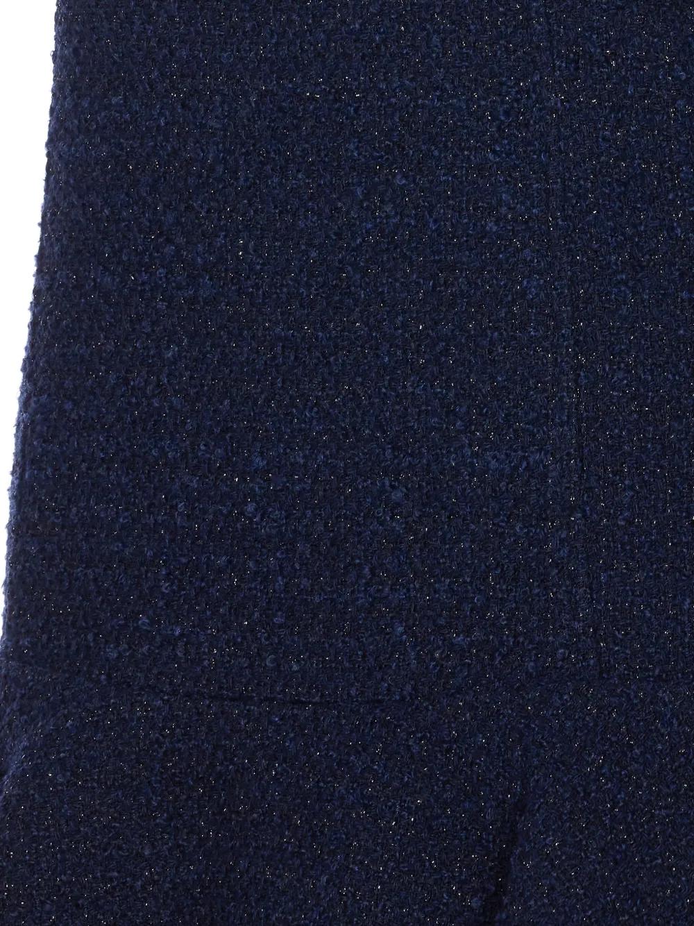 dark blue metallic effect crew neck sleeveless back zip closure flared hem