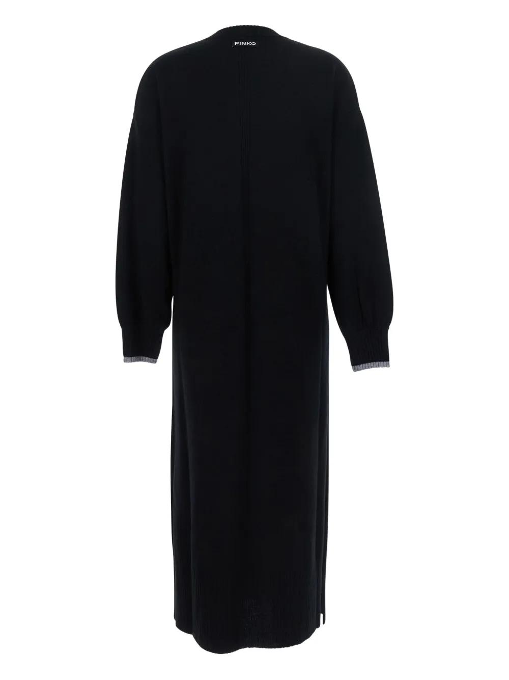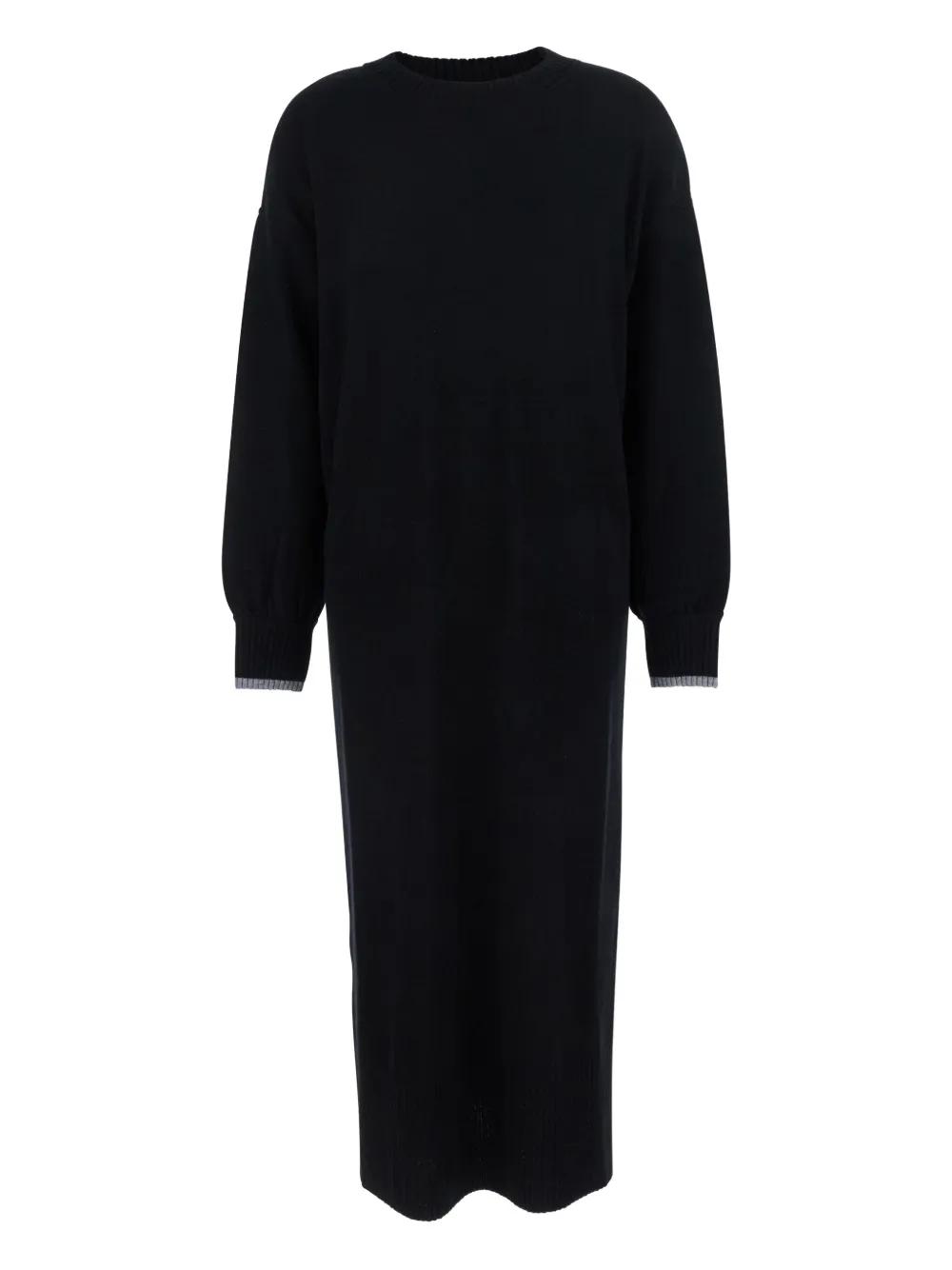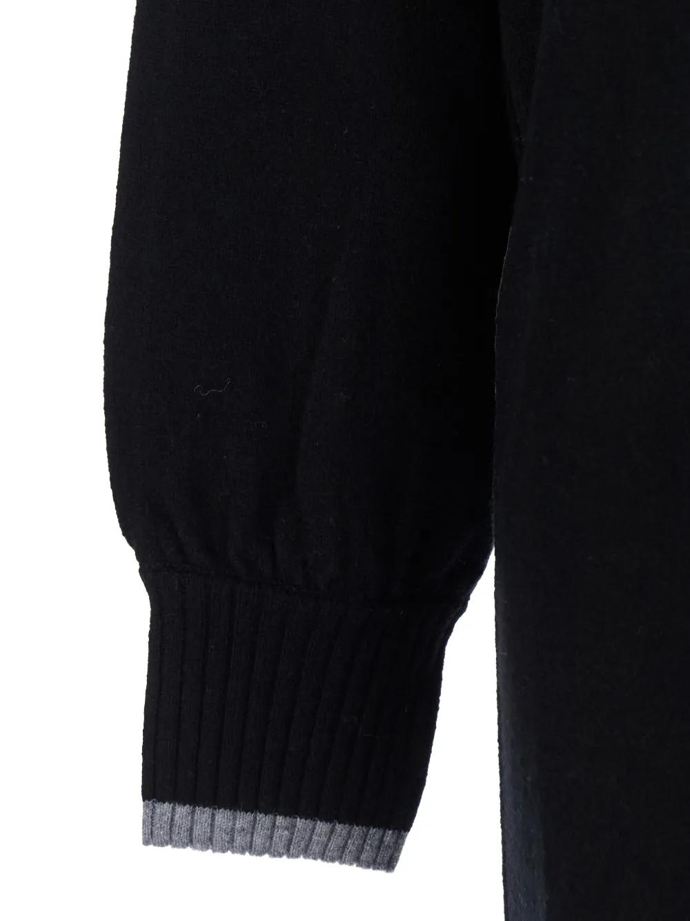 black crew neck side slit long sleeves contrasting ribbed cuffs