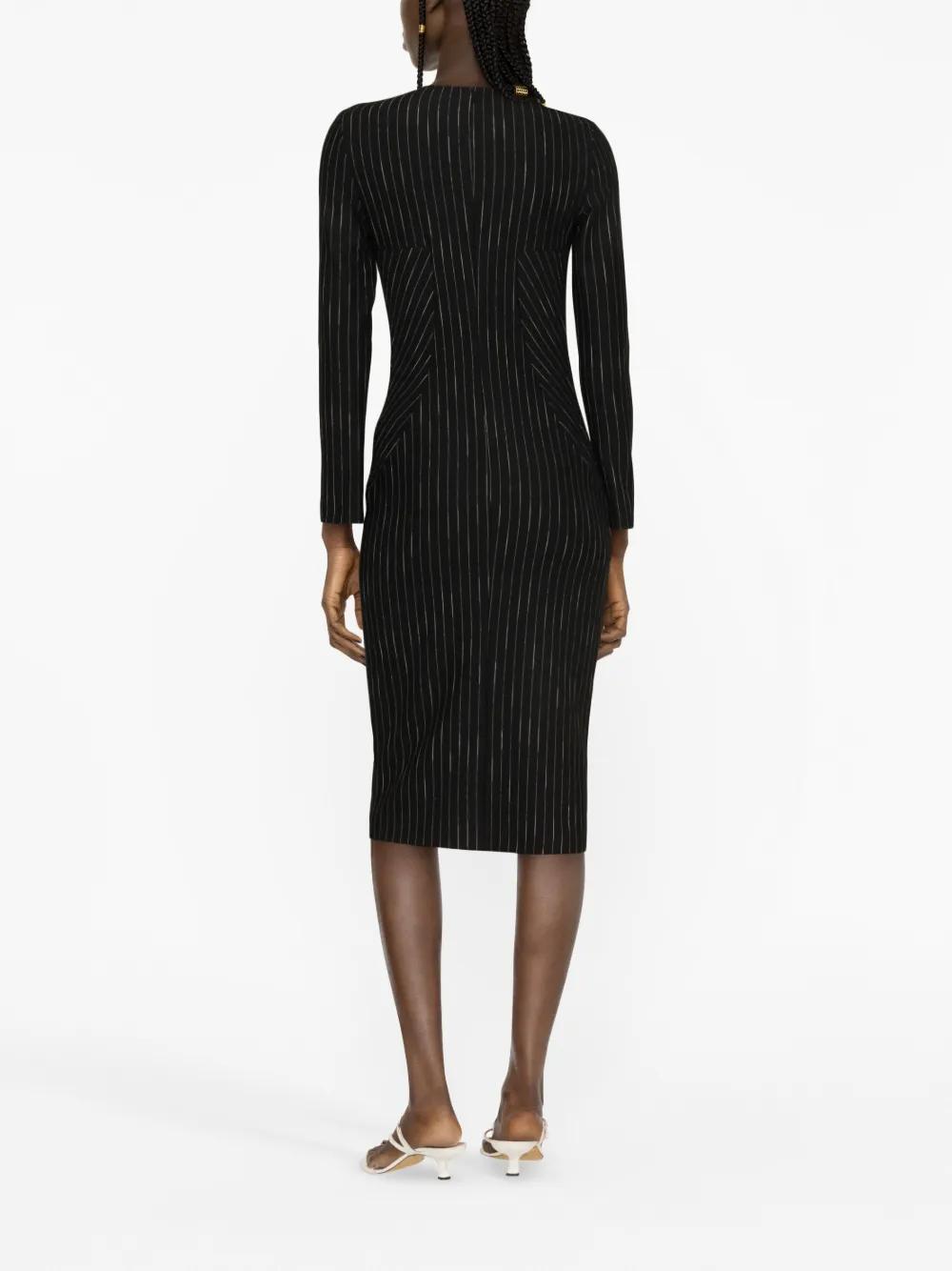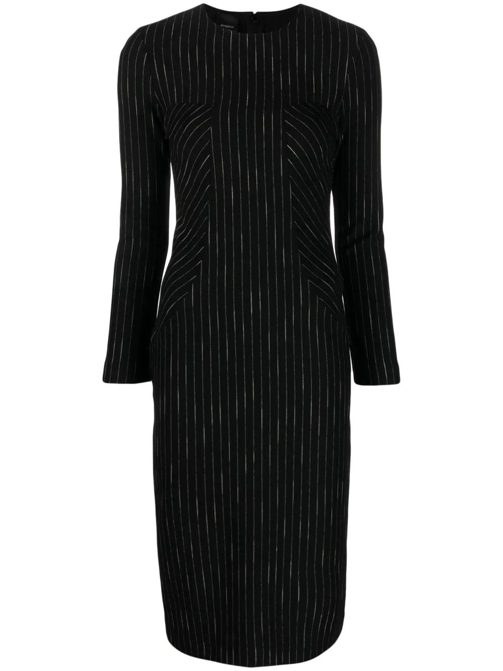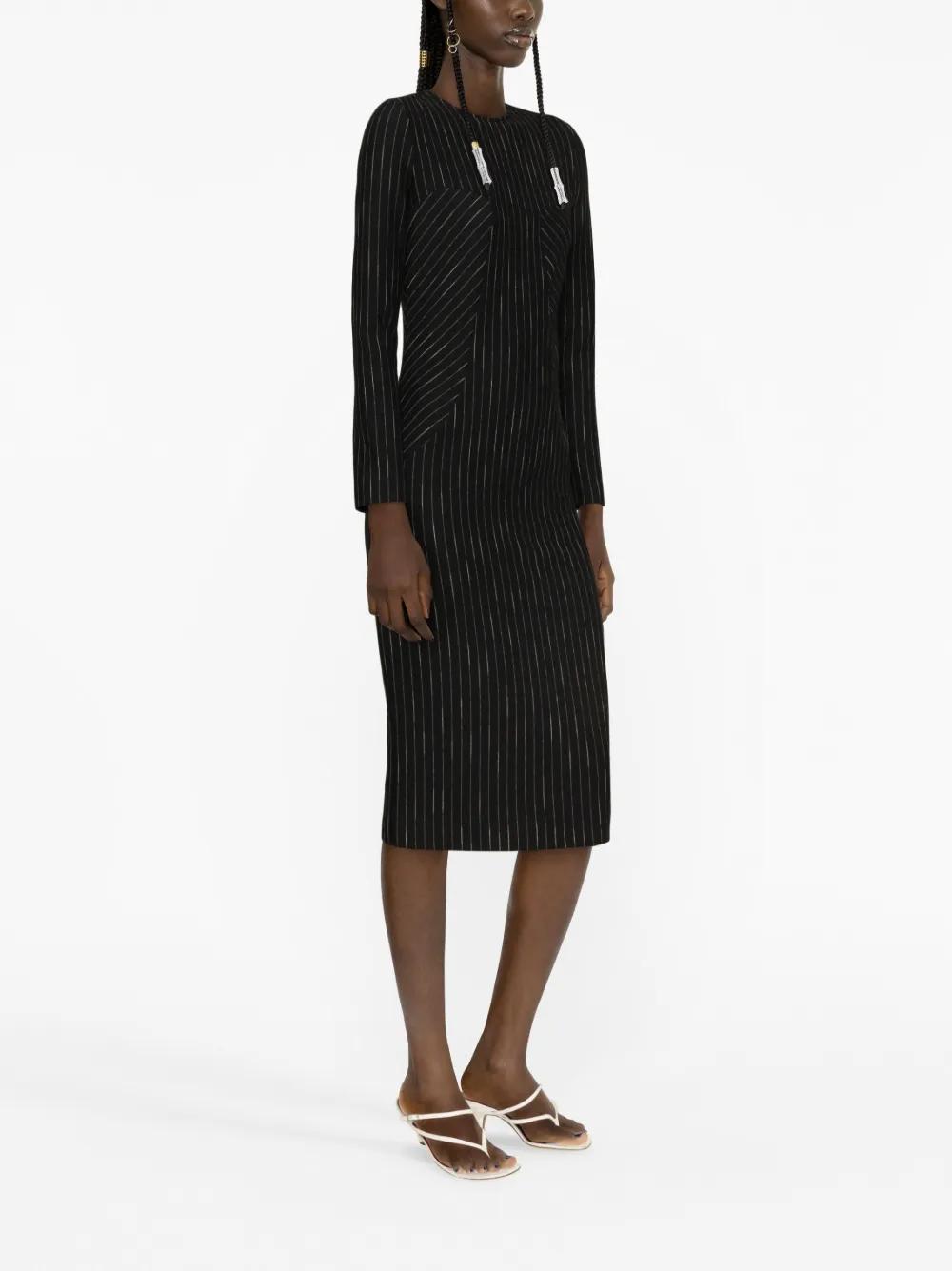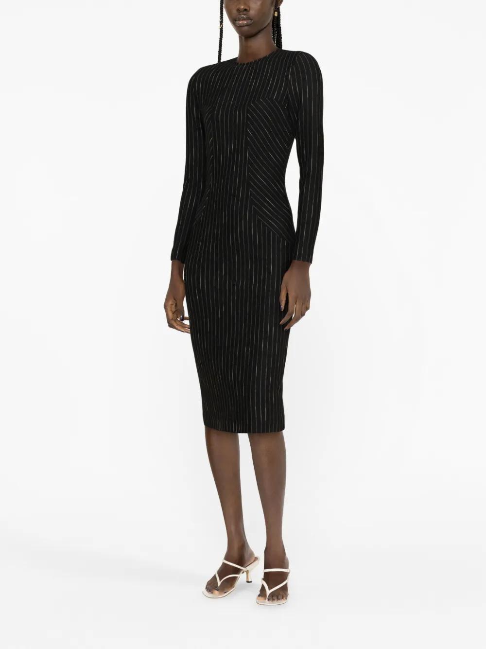 black stretch-design stripe detailing crew neck long sleeves knee-length straight hem