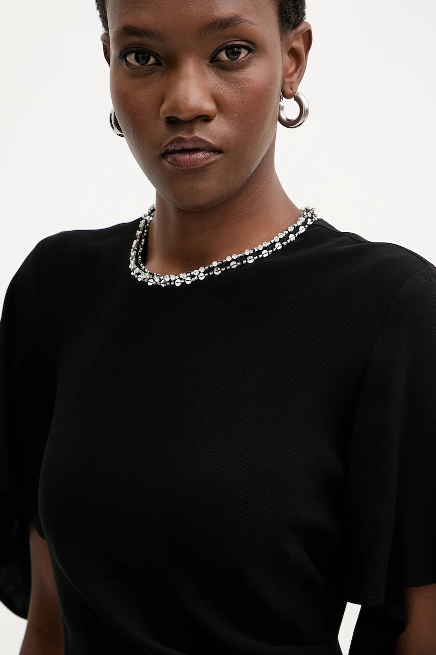 Uwaga: oryginalna rozmiarówka produktów tej marki jest rozmiarówką włoską. Informujemy, że rozmiary na metkach mogą różnić się od zamawianych ze względu na zastosowany przelicznik. - Dopasowany fason z efektownymi marszczeniami. - Z tyłu rozcięcie, które zapewnia większą swobodę podczas poruszania. - Z tyłu zapięcie na suwak. - Krótki rękaw. - Model o długości maxi. - Model z ozdobną aplikacją. - Klasyczny, okrągły dekolt. - Długość: 126 cm. - Szerokość pod pachami: 36 cm. - Długość rękawa: 38 cm. - Szerokość w talii: 31 cm. - Wymiary podane dla rozmiaru: 36.