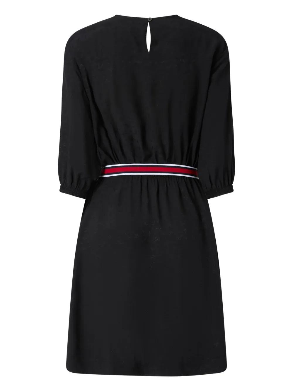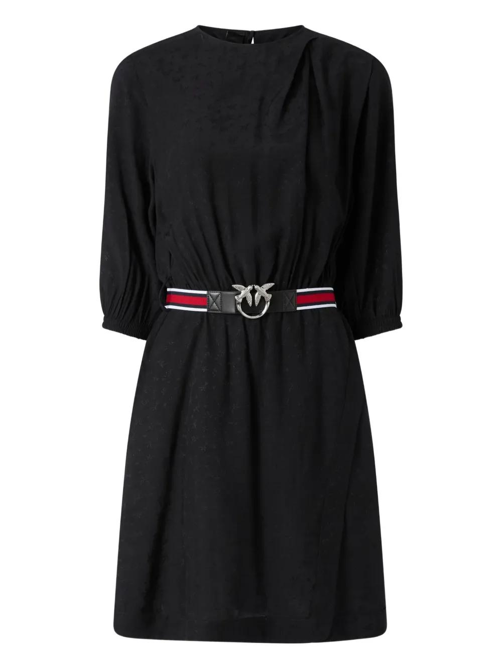 black round neck three-quarter sleeves belt buckle fastening keyhole detail