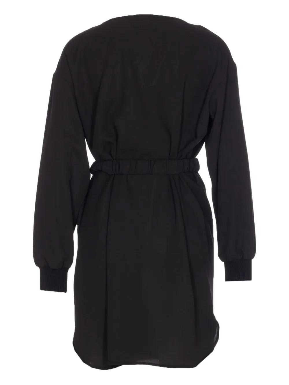 black V-neck long sleeves elasticised cuffs self-tie belt