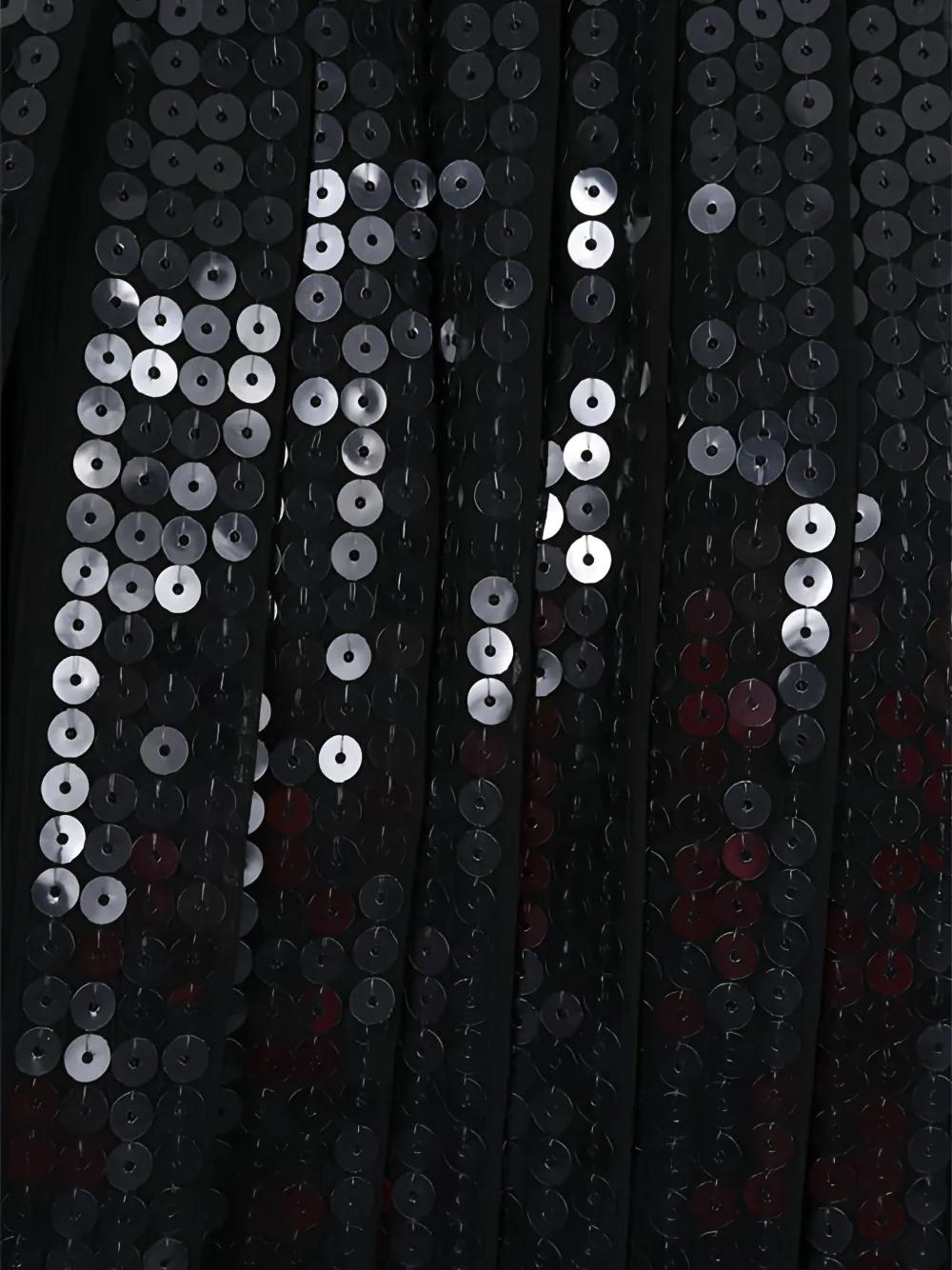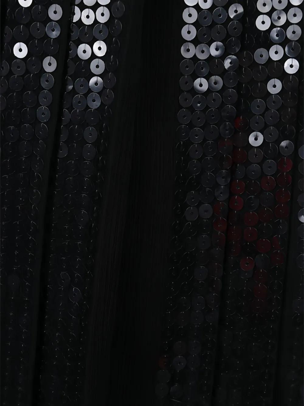 black sequin embellishment pleated chiffon boat neckline side bow concealed zip closure