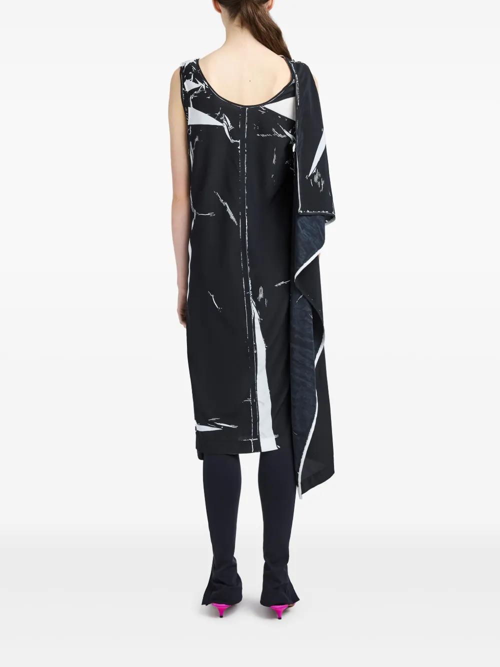 black button fastening at the shoulder draped panel detail boat neck scoop back