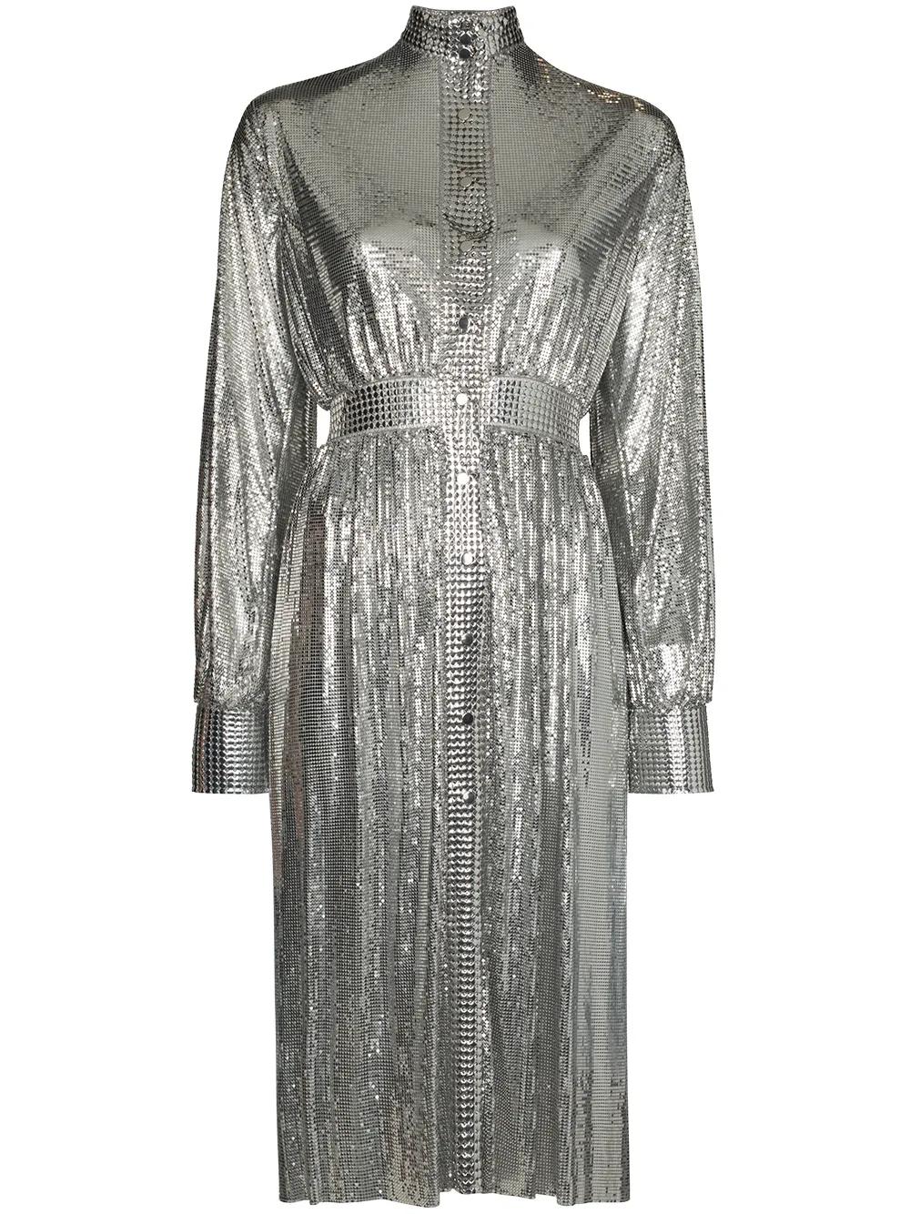 Rabanne high neck sequin mesh dress - Silver