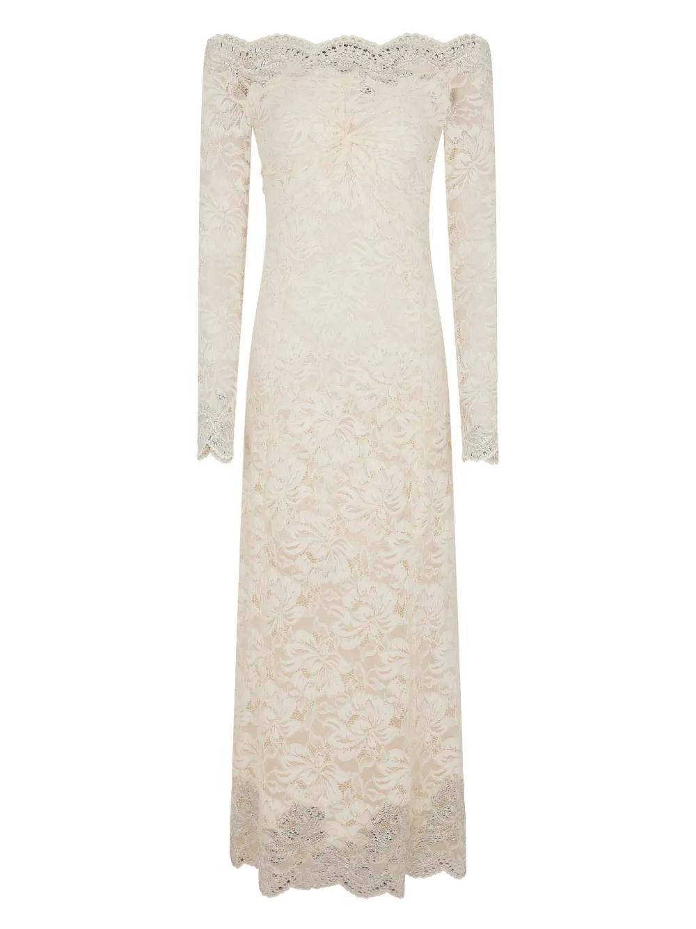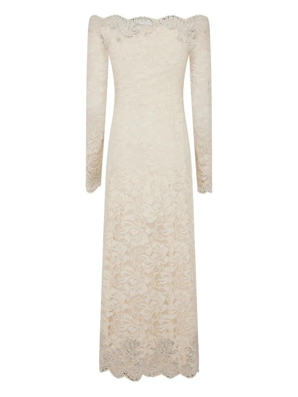 off-white lace off-shoulder long sleeves scalloped hem embellished hemline